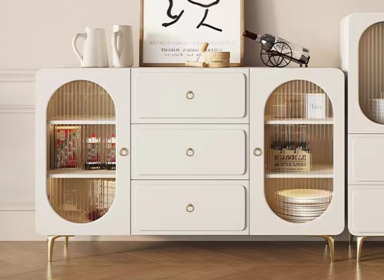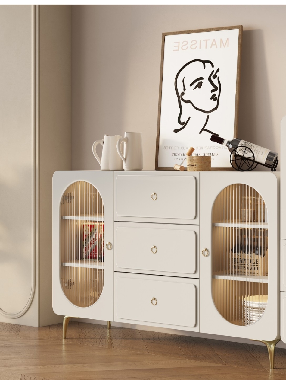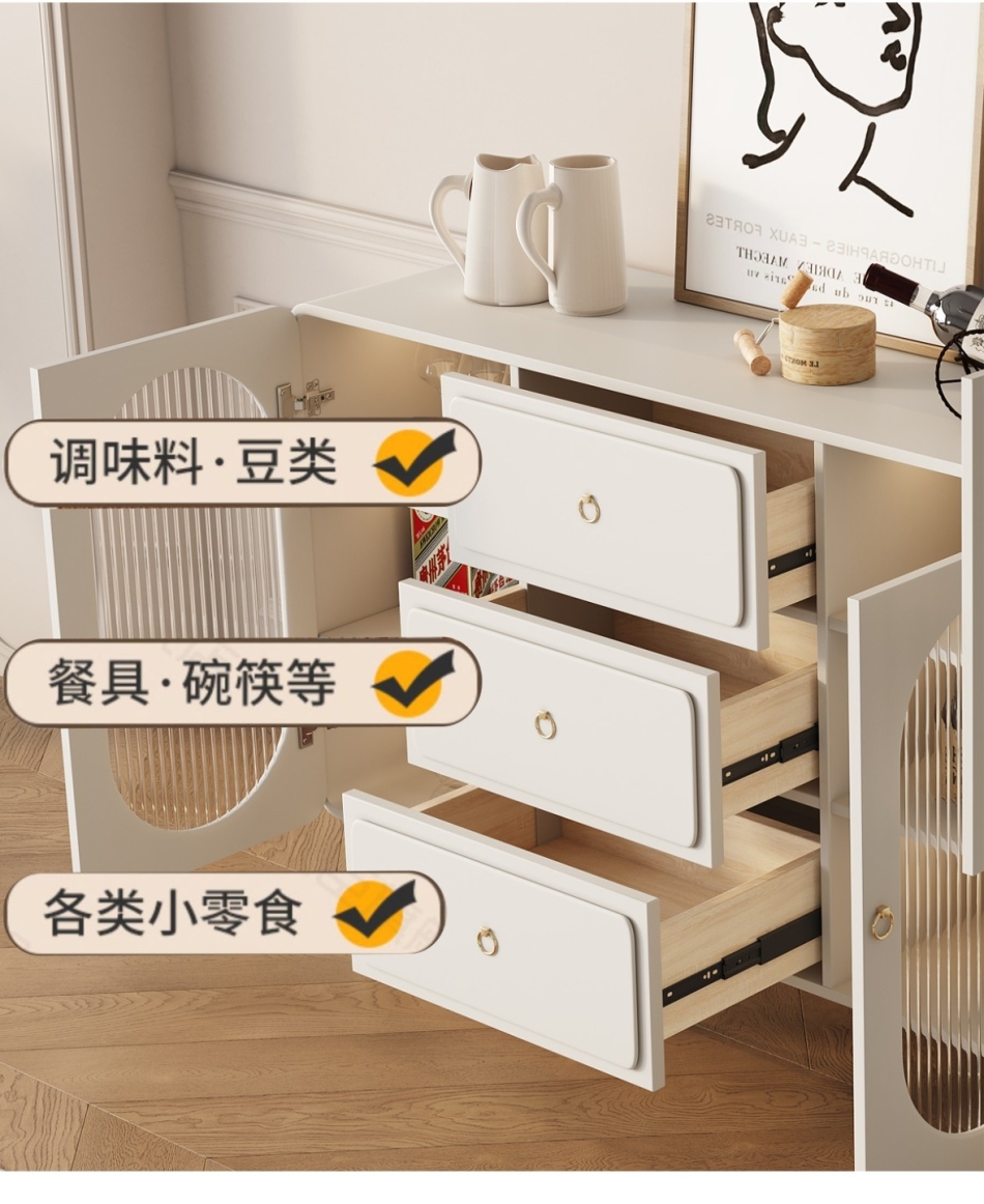 简约烤漆工艺奶油风餐边柜餐厅酒柜客厅收纳展示柜