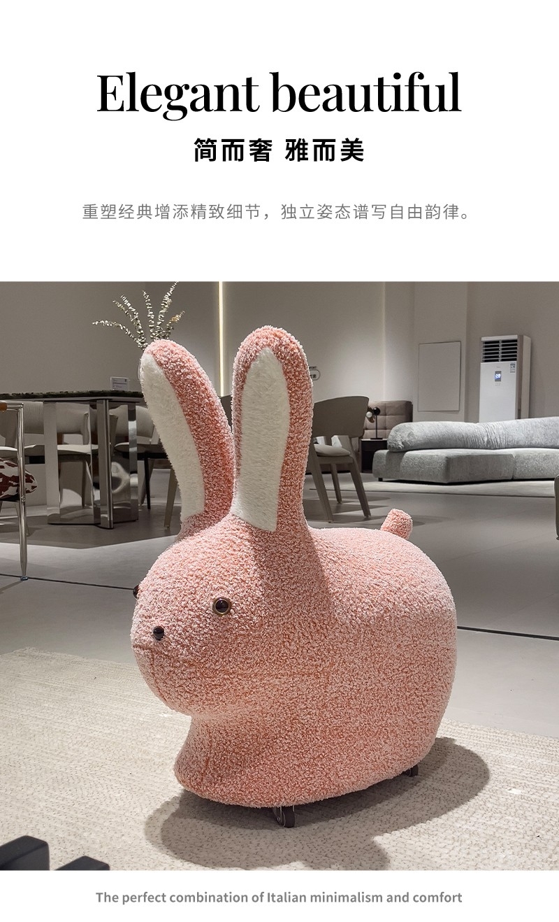 网红萌兔儿童坐凳简约泰迪绒萌宠小兔动物座椅