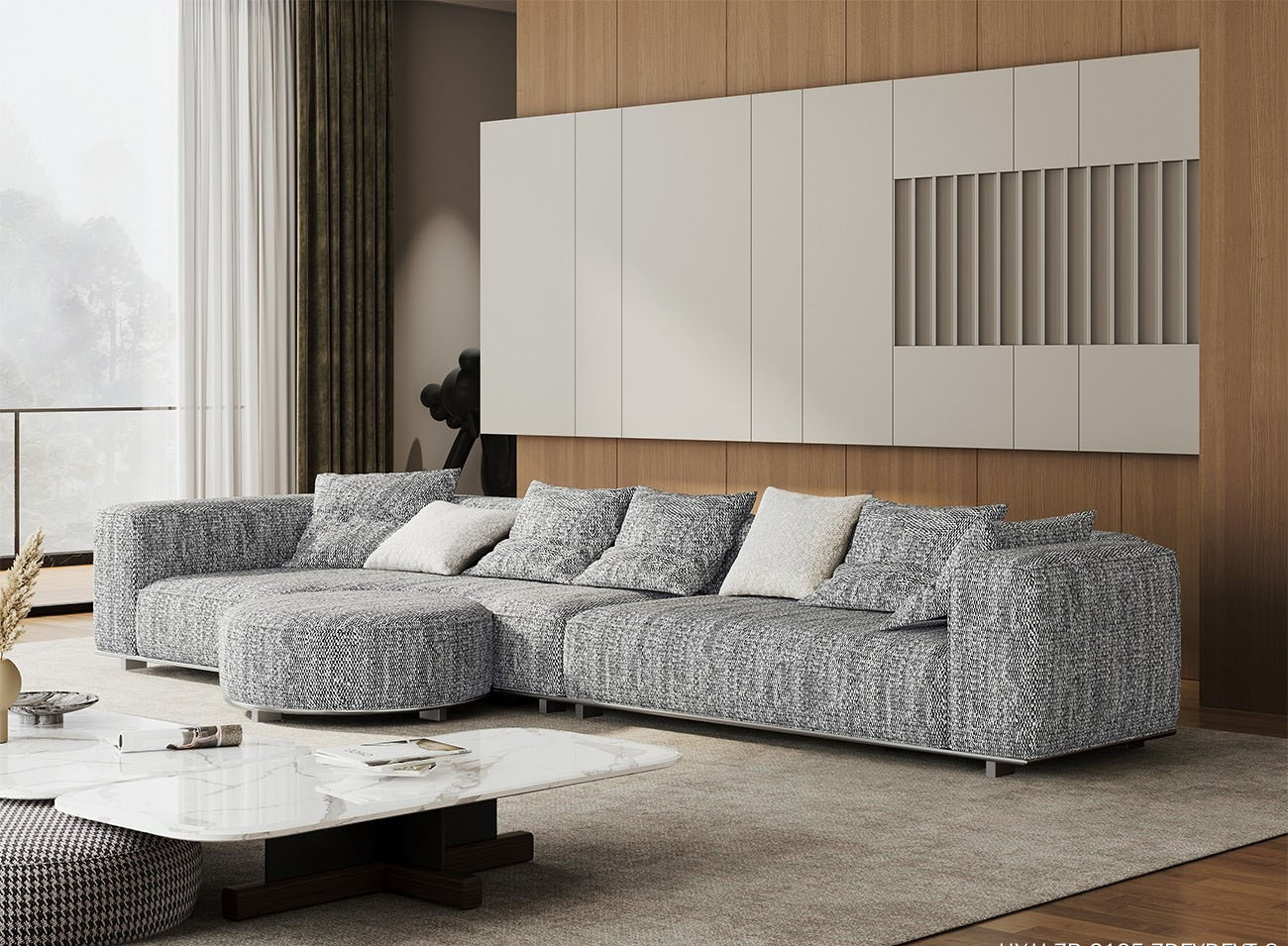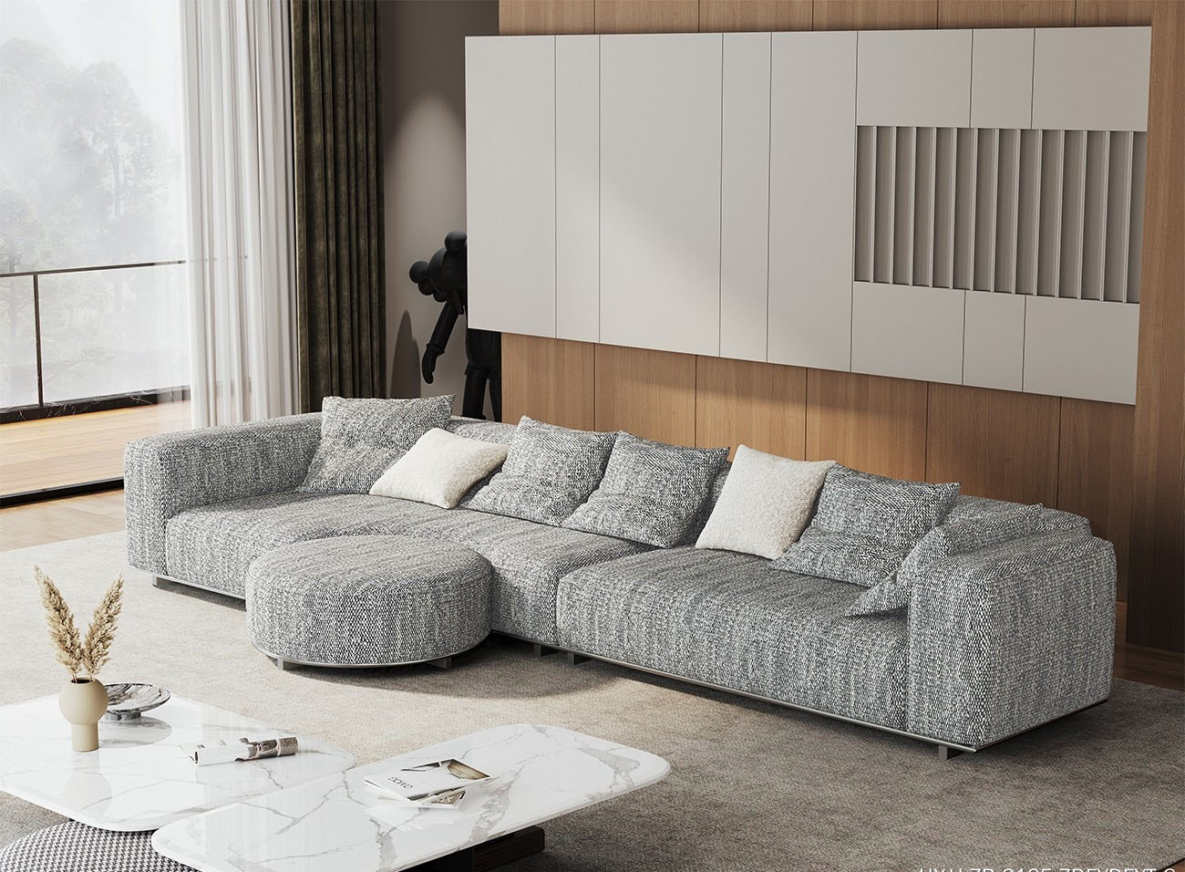 设计师款-伊夫沙发 大平层别墅客厅棉麻布艺软包沙发可移动圆踏异形组合沙发