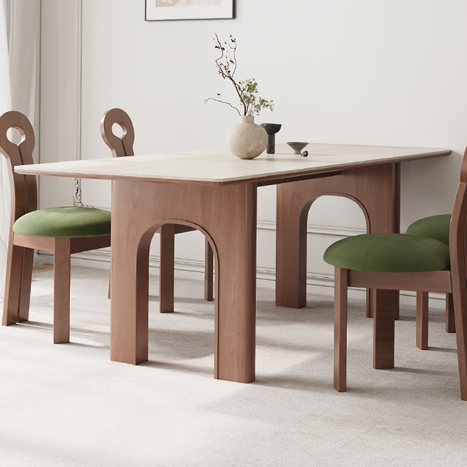 设计师款-凯旋门餐桌 中古风系列 复古洞石岩板餐桌中古风客厅简约实木长餐桌