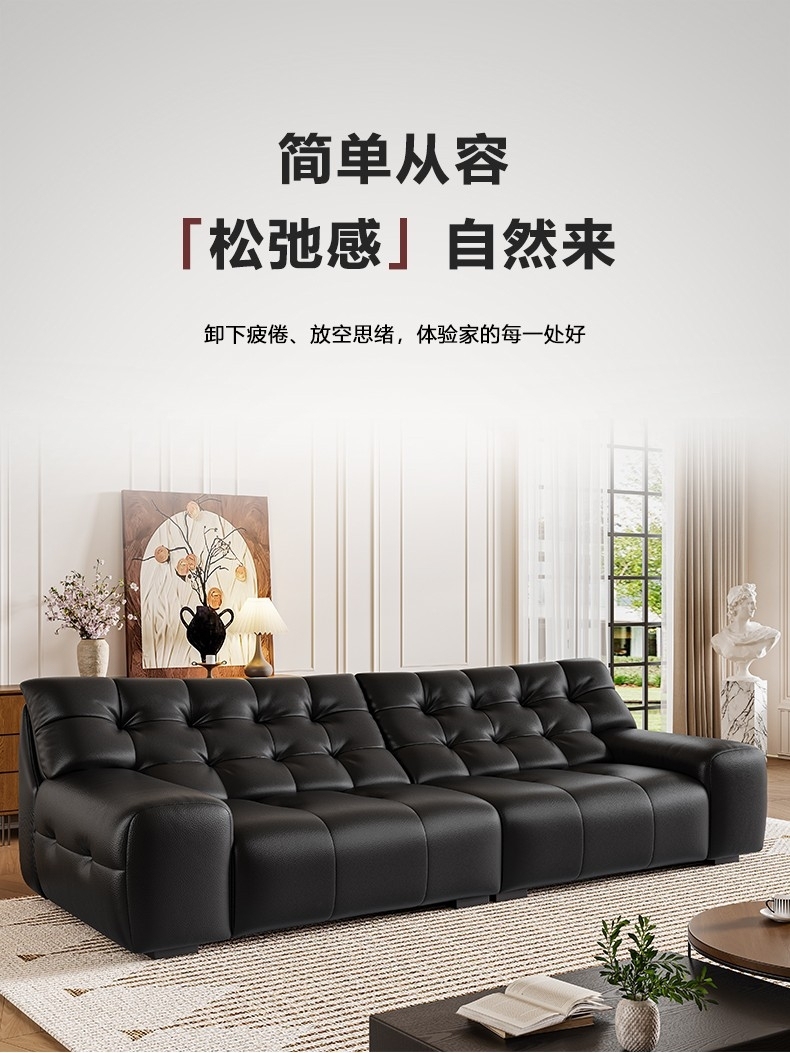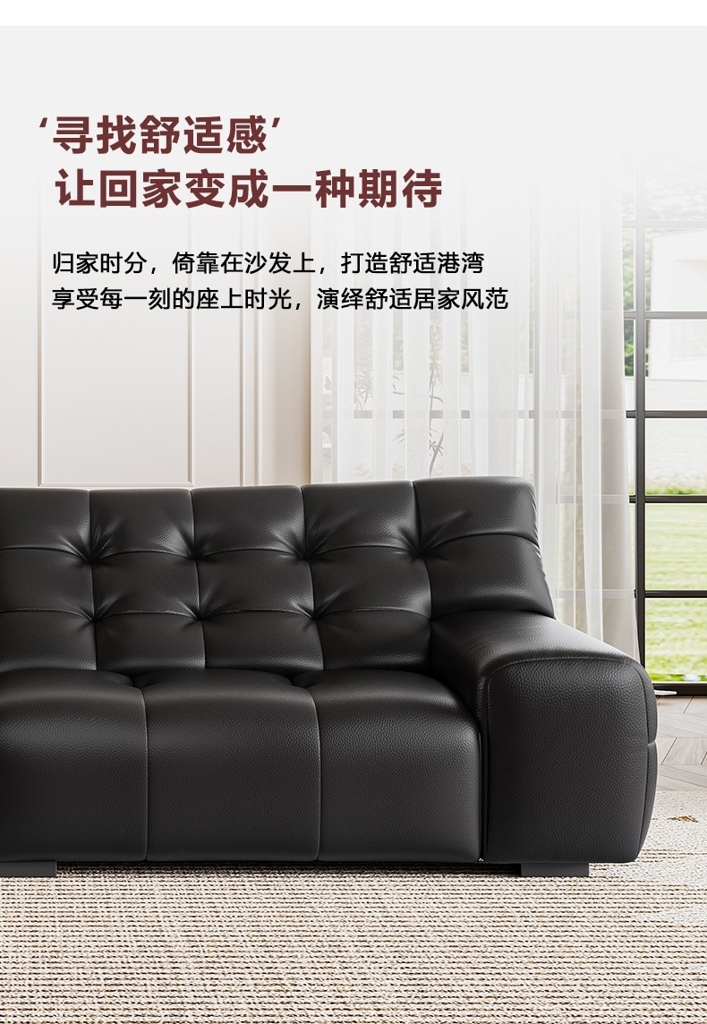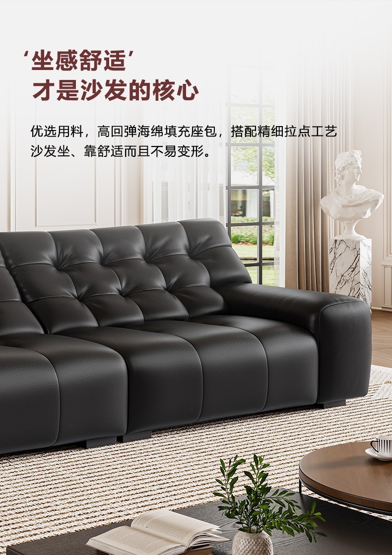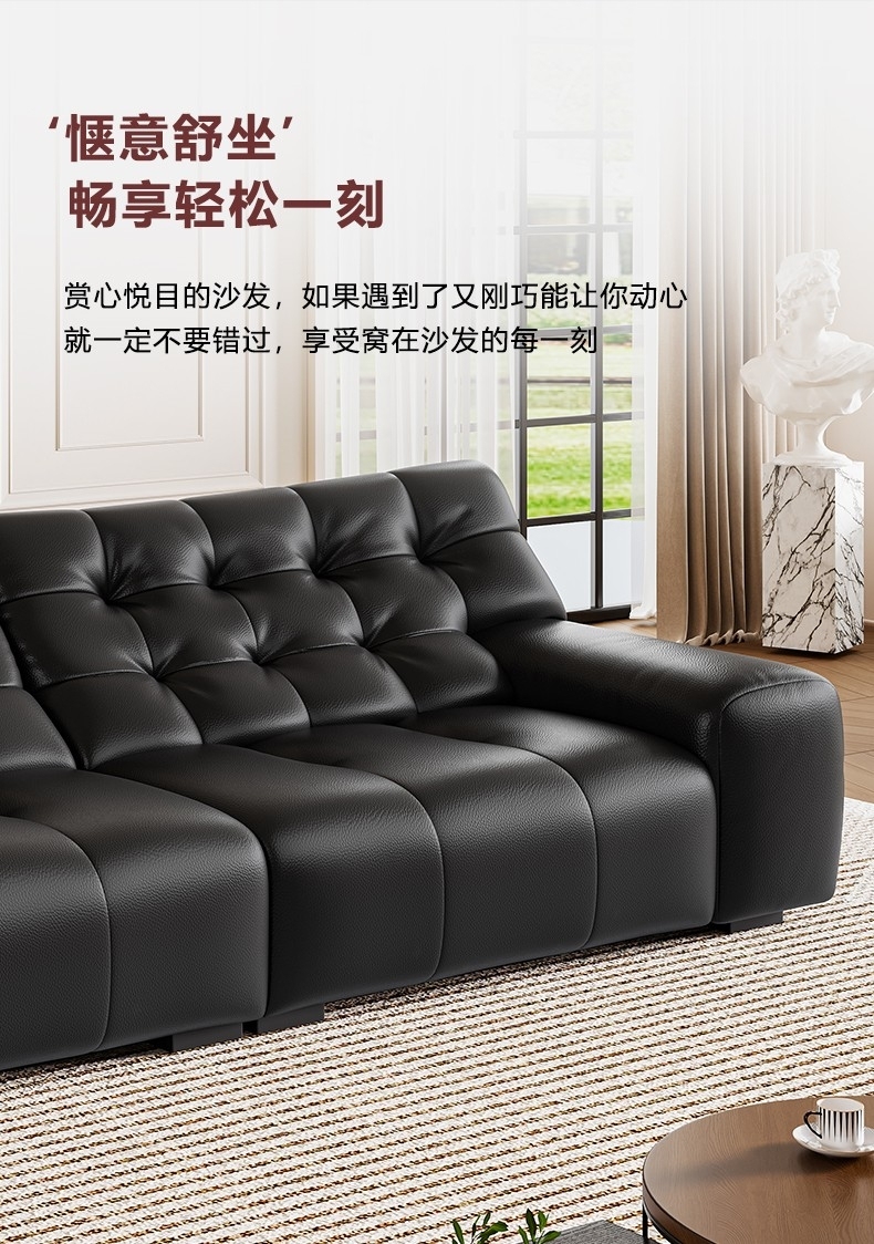 设计师款-大黑熊沙发 极简风时尚客厅头层牛皮荔枝纹沙发
