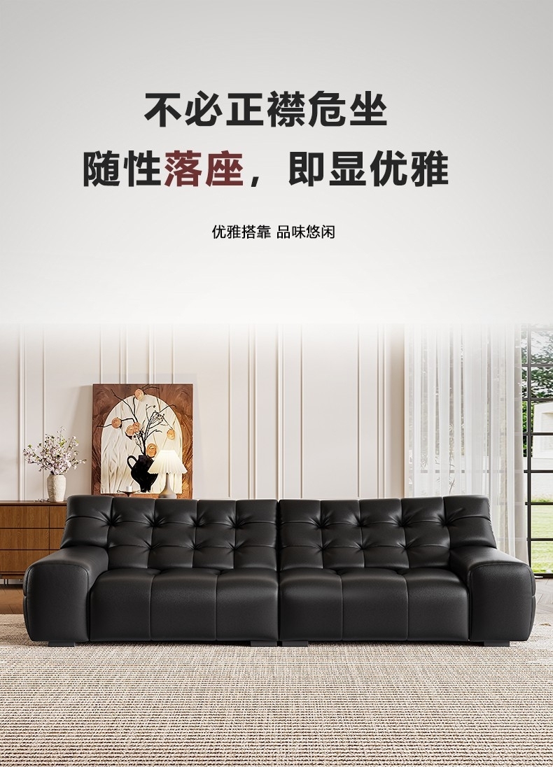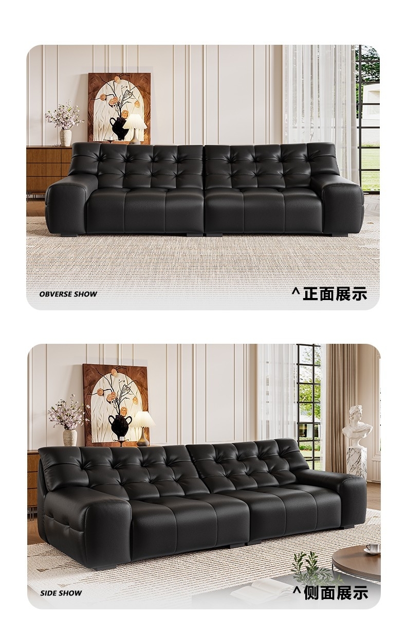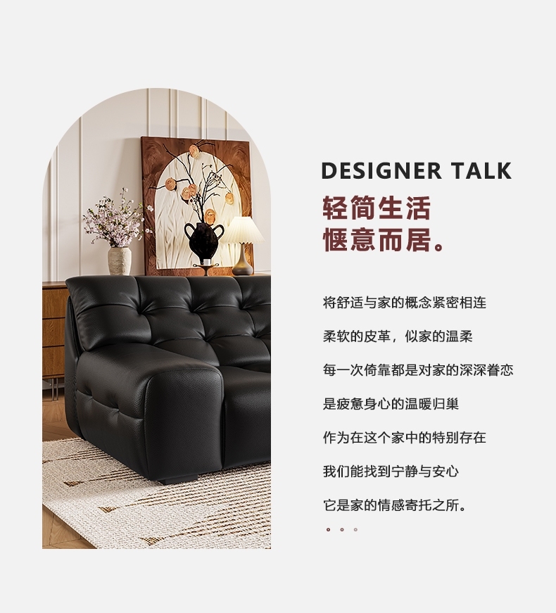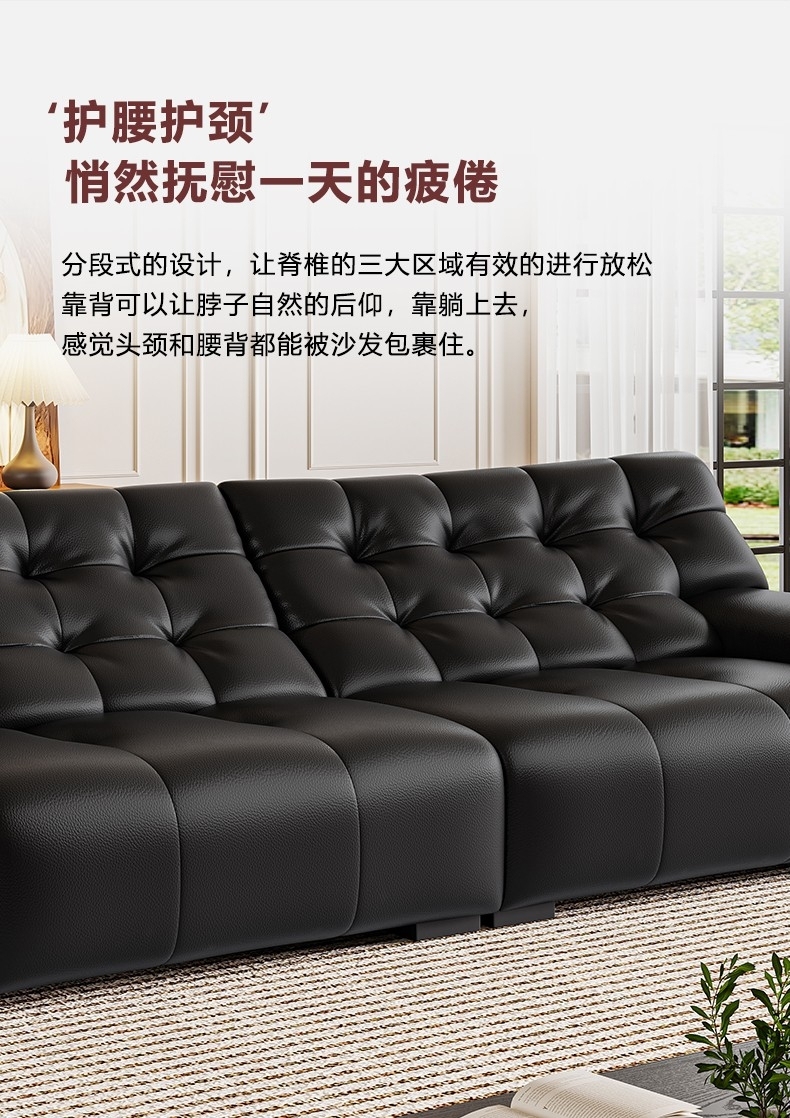 设计师款-大黑熊沙发 极简风时尚客厅头层牛皮荔枝纹沙发