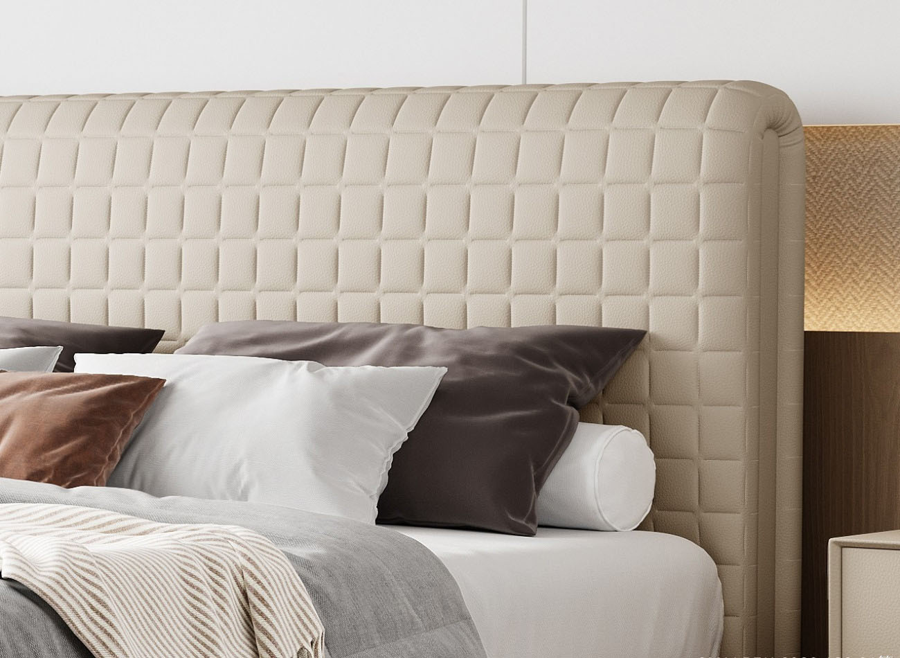 设计师款-小方格床 极简风全生态真皮悬浮齐边床