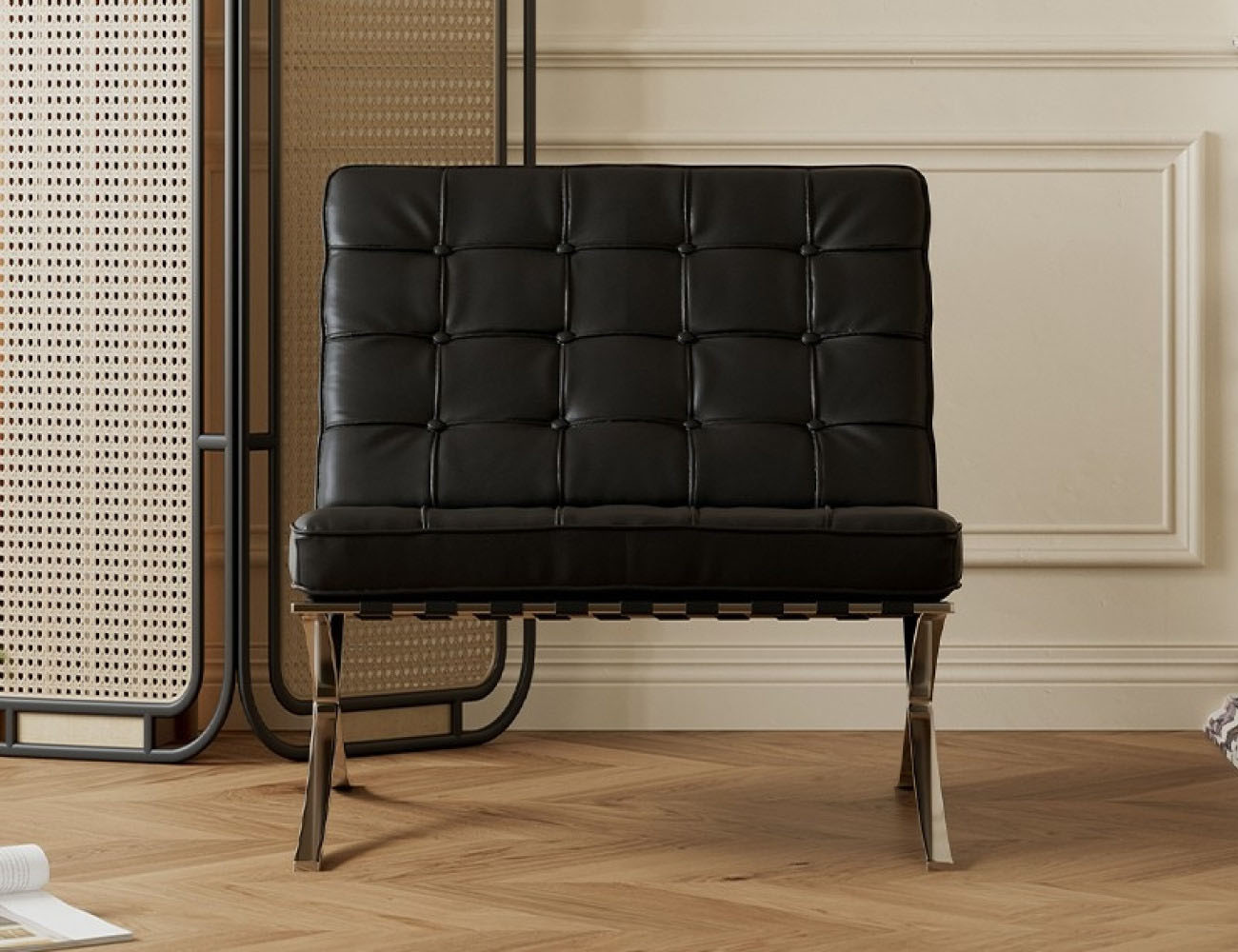 设计师款-巴塞罗那椅 极简经典西皮高级感休闲阳台客厅躺椅