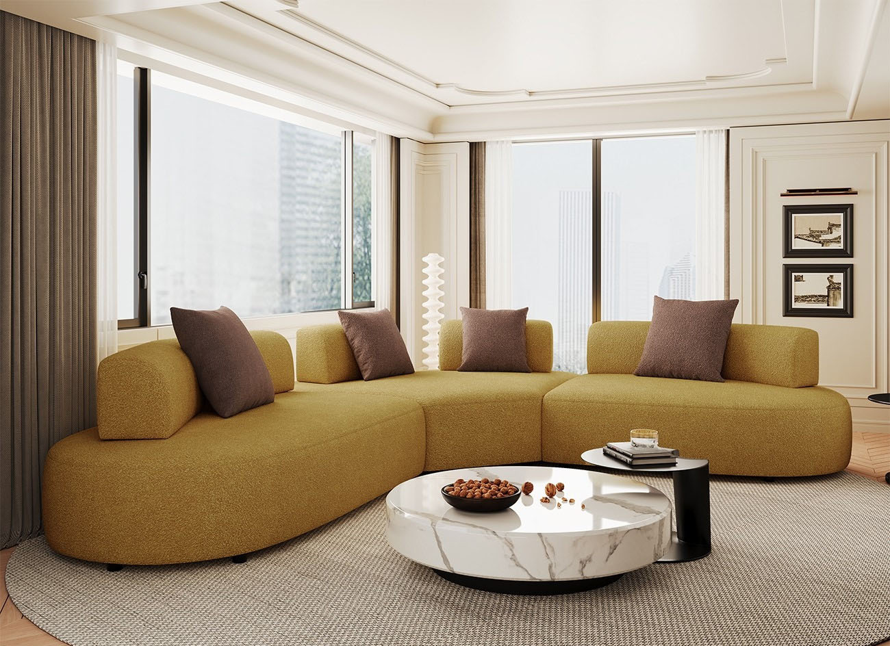 设计师款-弧形沙发 简约大气家用客厅泰迪绒舒适软包沙发极简创意可移动靠背异形沙发
