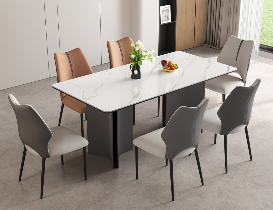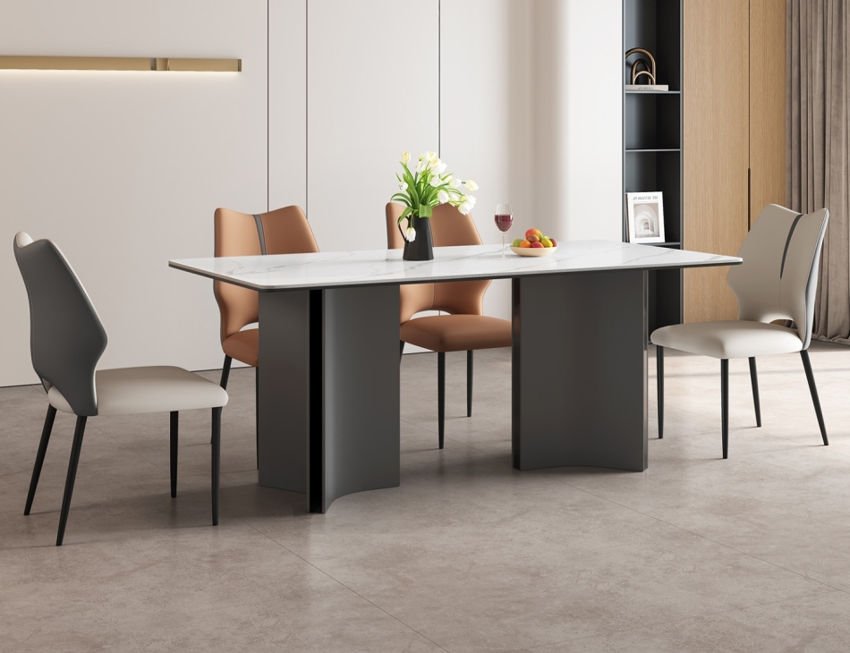 设计师款-大象腿餐桌 简约时尚亮光雪山白岩板台面餐台极简风家用餐厅长餐桌