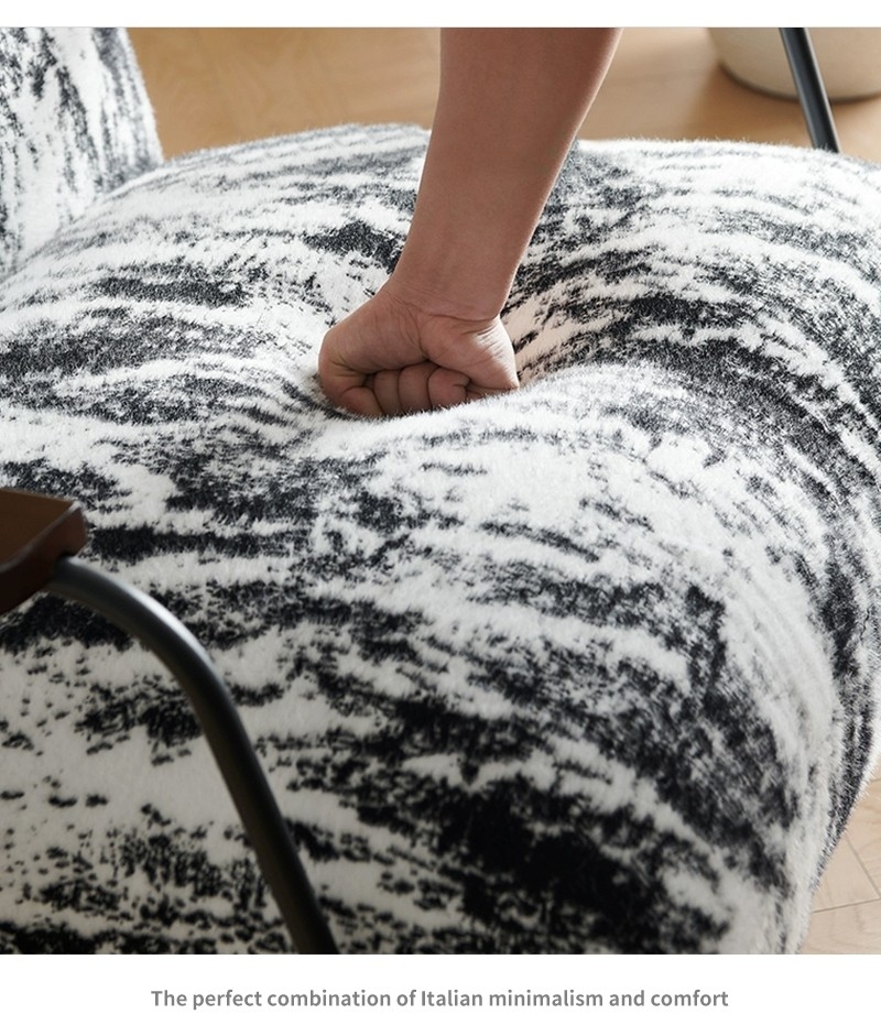 产品材质:底架:碳素钢五金配木脚,扶手+面料:水貂绒+填充物:高回弹海绵