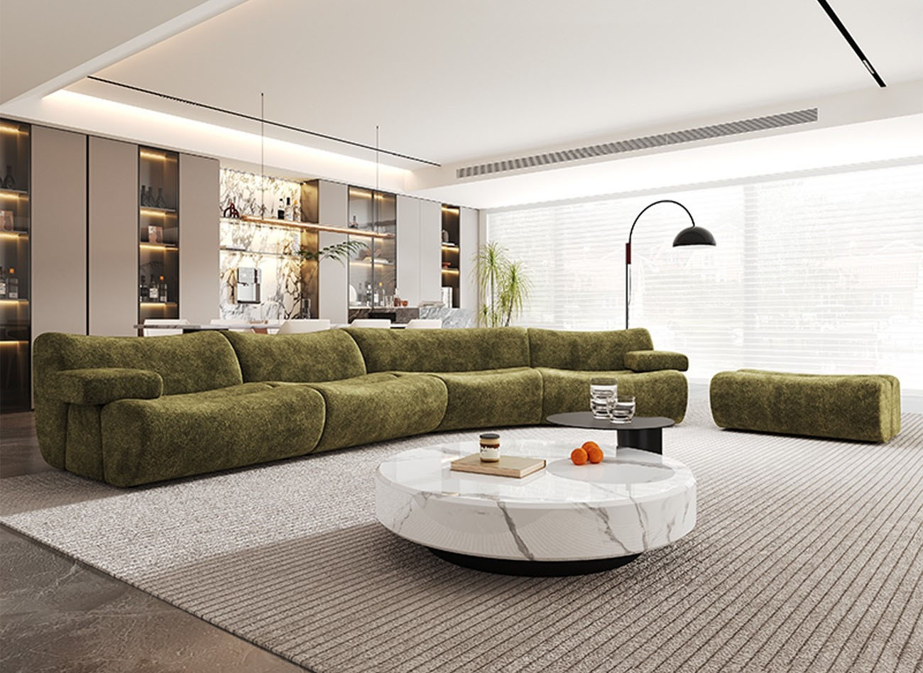 设计师款-竹节沙发 时尚大气别墅大平层客厅异形沙发雪尼尔绒布组合沙发