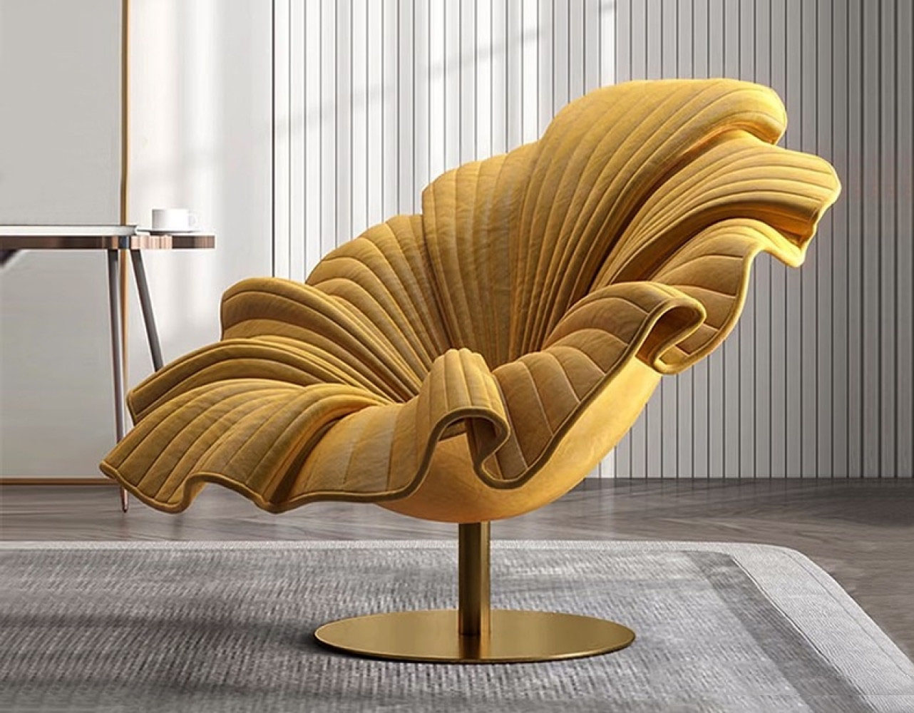 设计师款-花瓣椅 意式轻奢创意客厅绒布面料旋转休闲椅