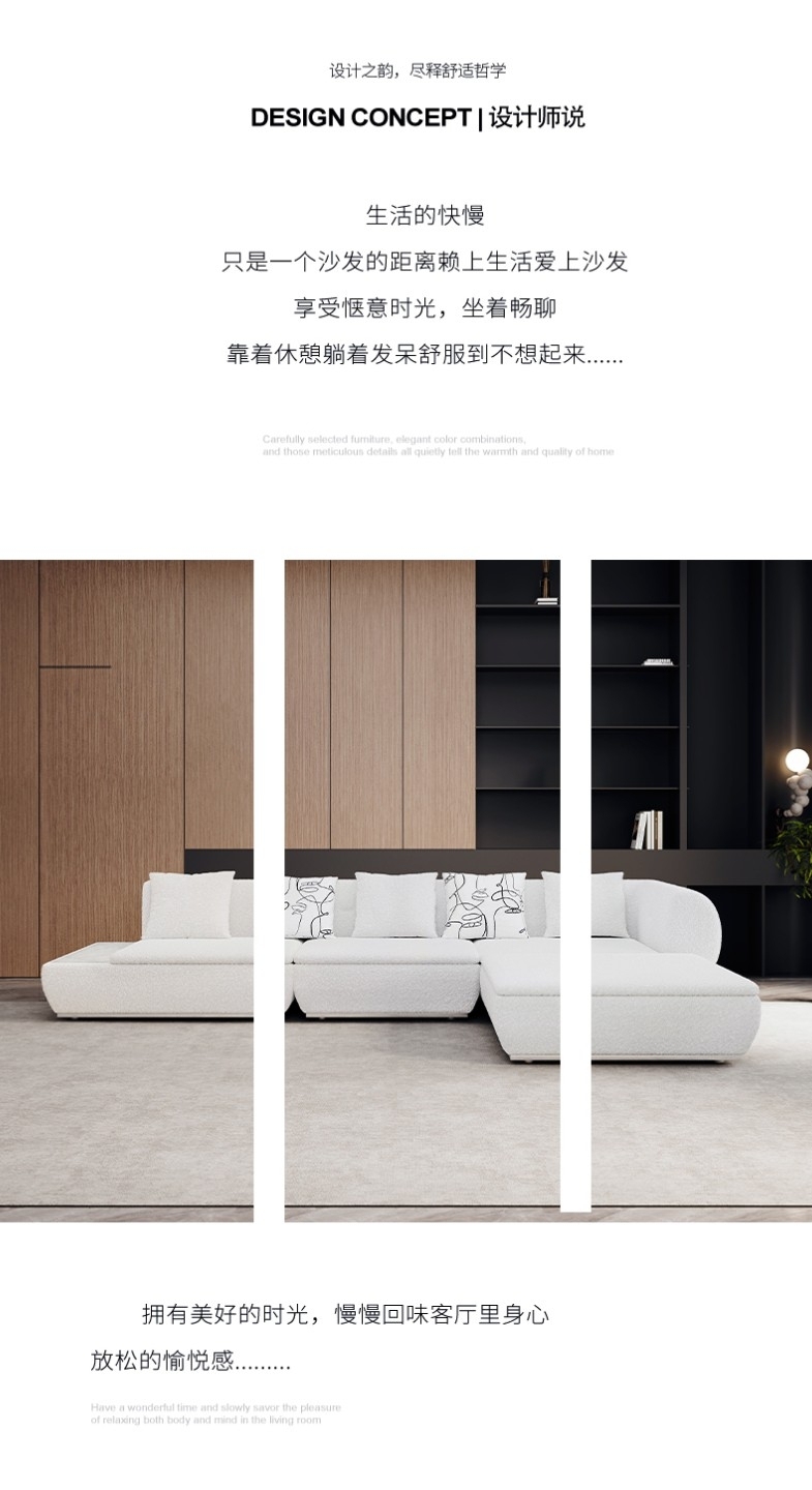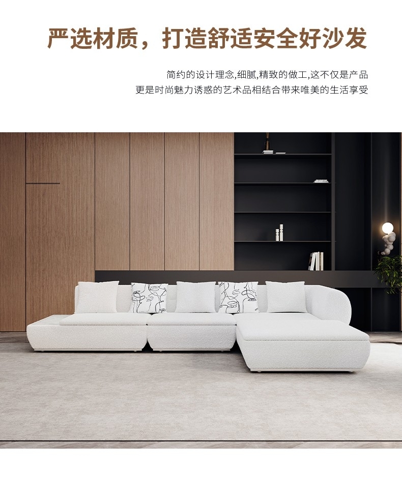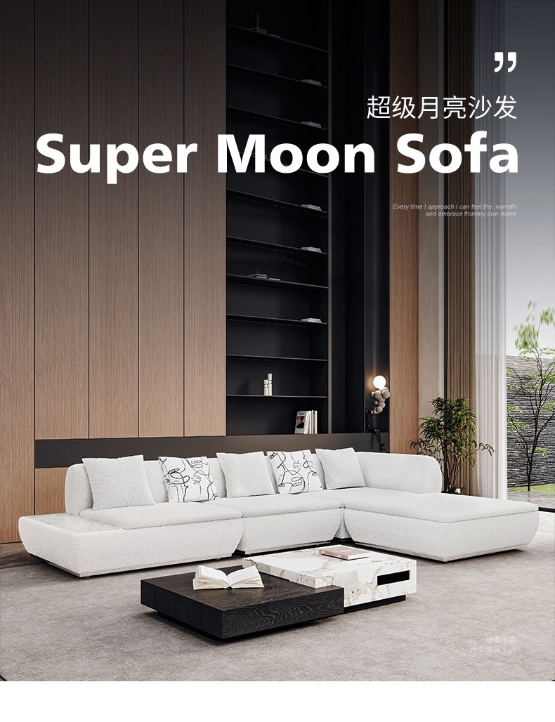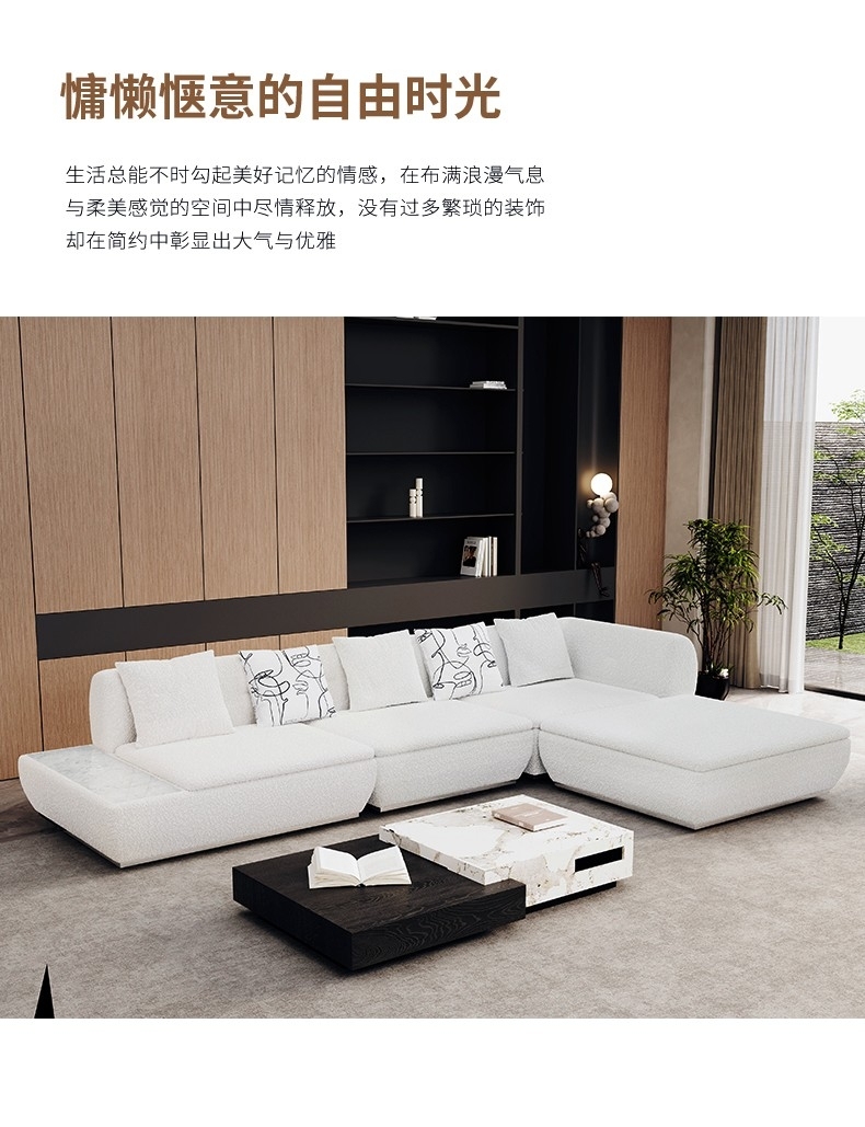设计师款-超级月亮沙发 极简大气客厅直排组合沙发羊羔绒软包带大理石边几沙发