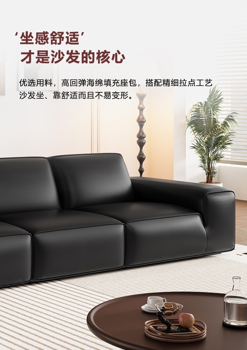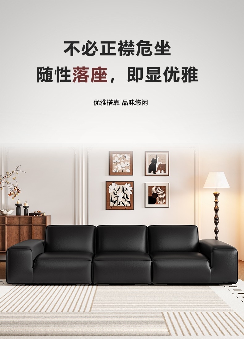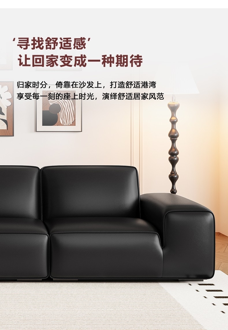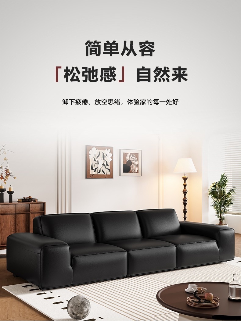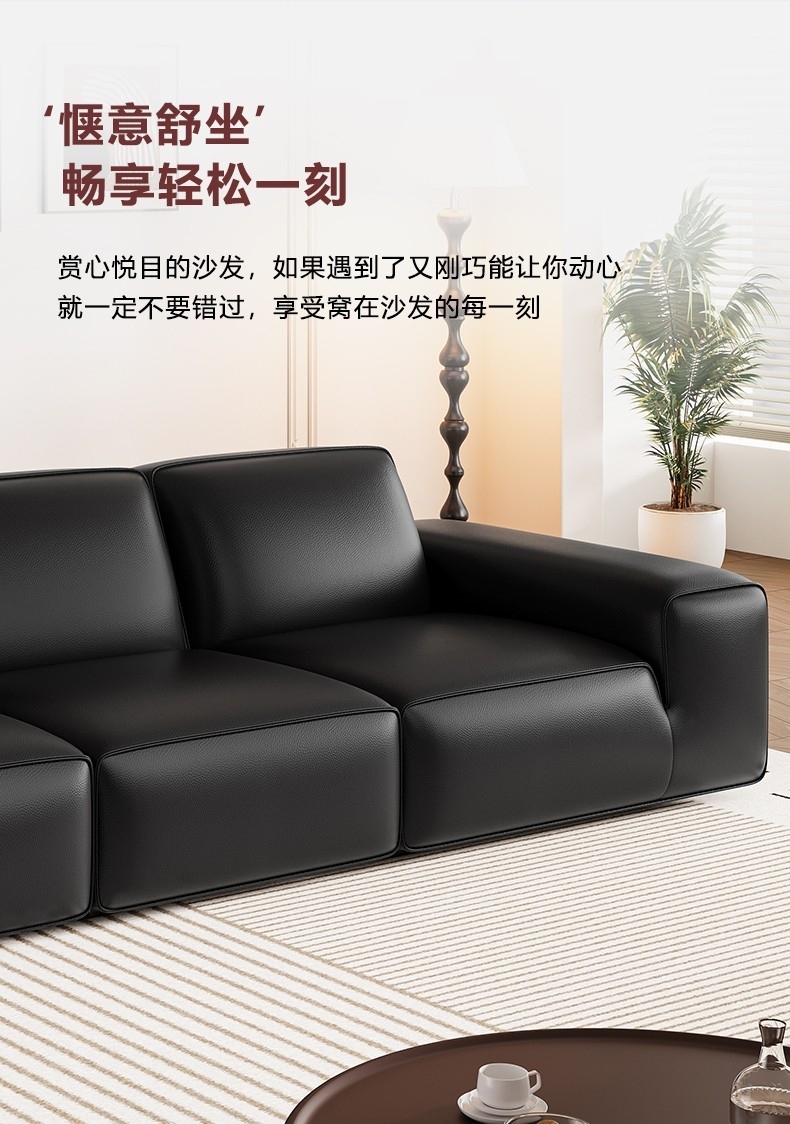 设计师款-Avenue大黑牛沙发 极简风时尚客厅头层牛皮荔枝纹沙发