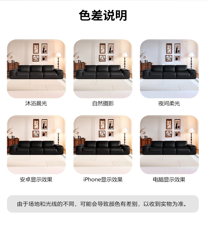轻奢风软包沙发 简约客厅公寓头层牛皮荔枝纹沙发