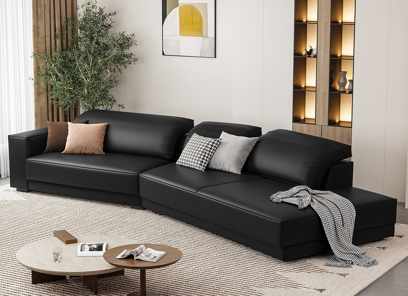 设计师款-Avenue大黑牛沙发 极简风时尚客厅头层牛皮荔枝纹沙发