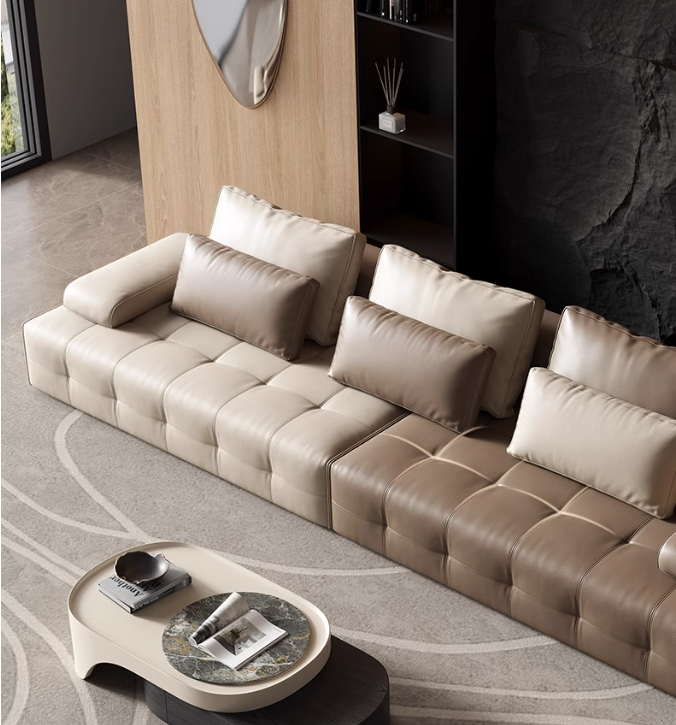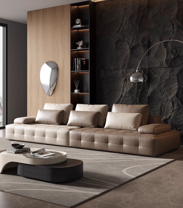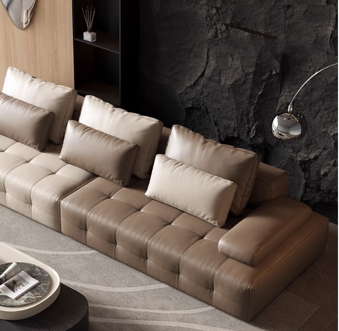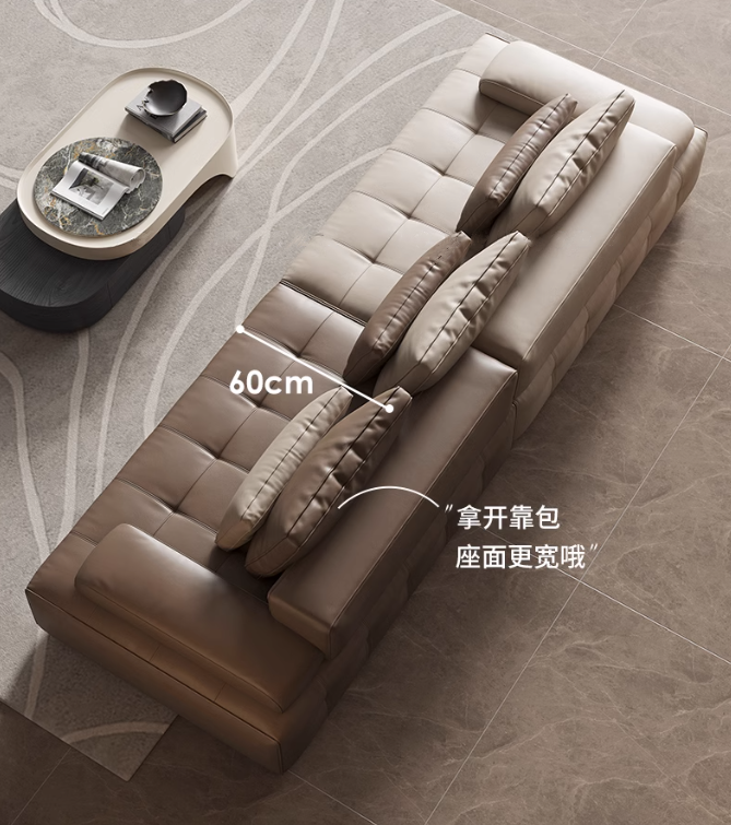 设计师款-Lawrence劳伦斯 意式极简风格羽绒纳帕真皮直排沙发