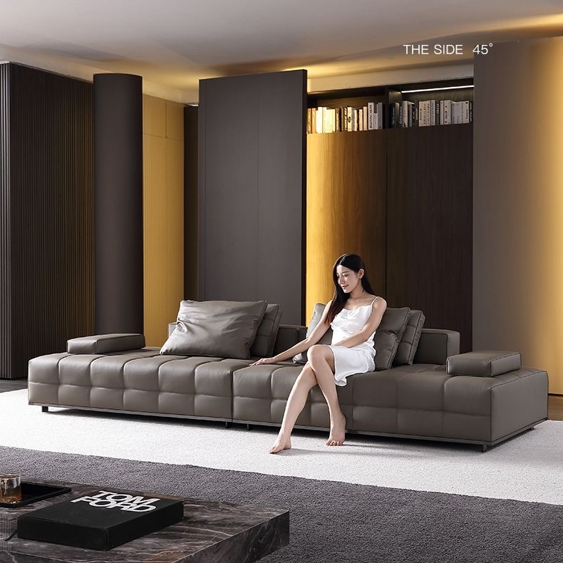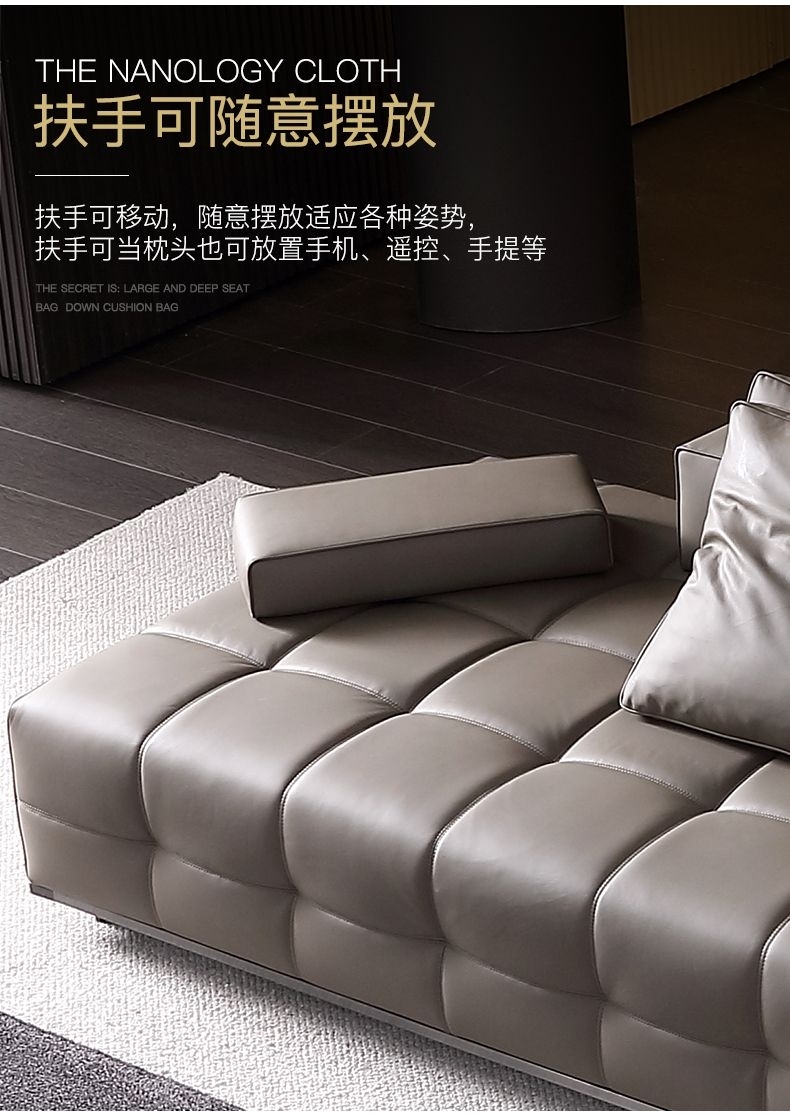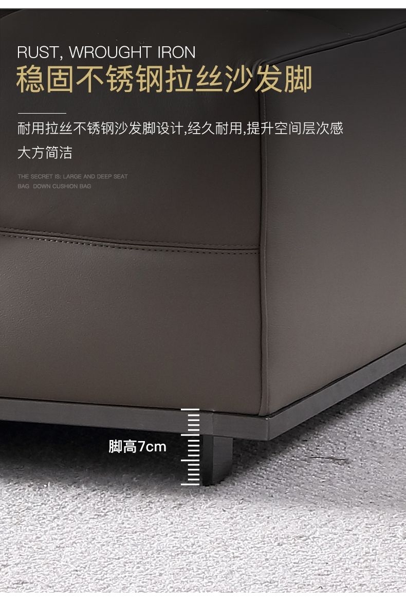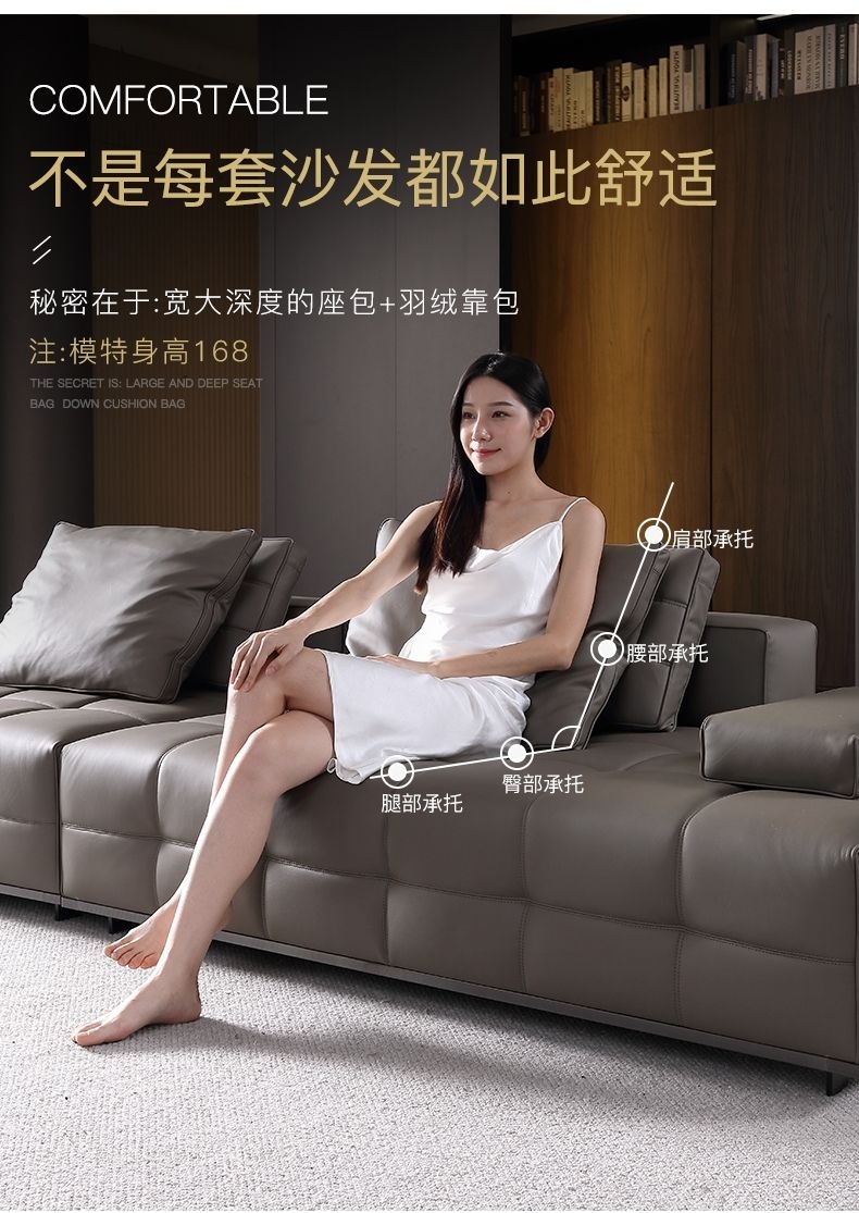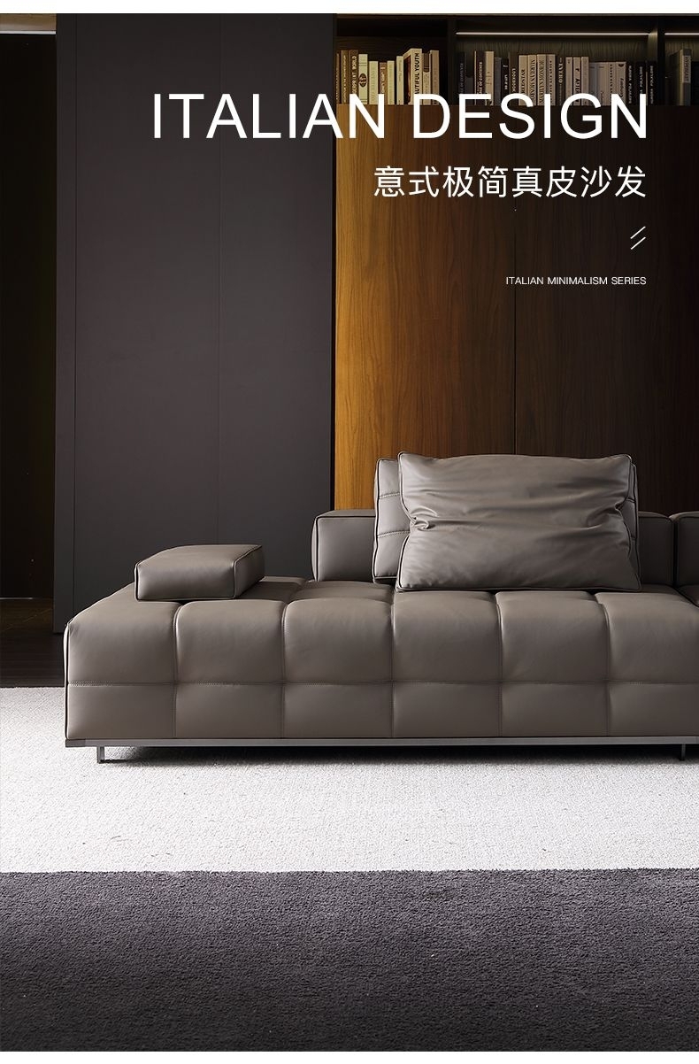 设计师款-Lawrence劳伦斯 意式极简风格羽绒纳帕真皮直排沙发