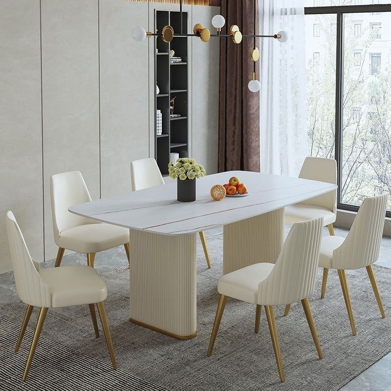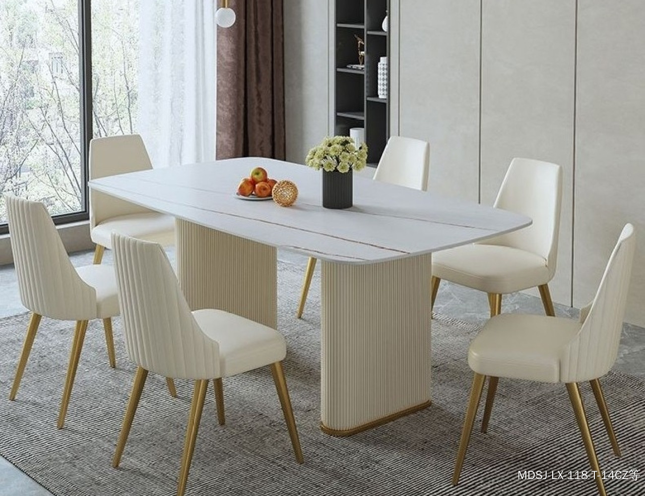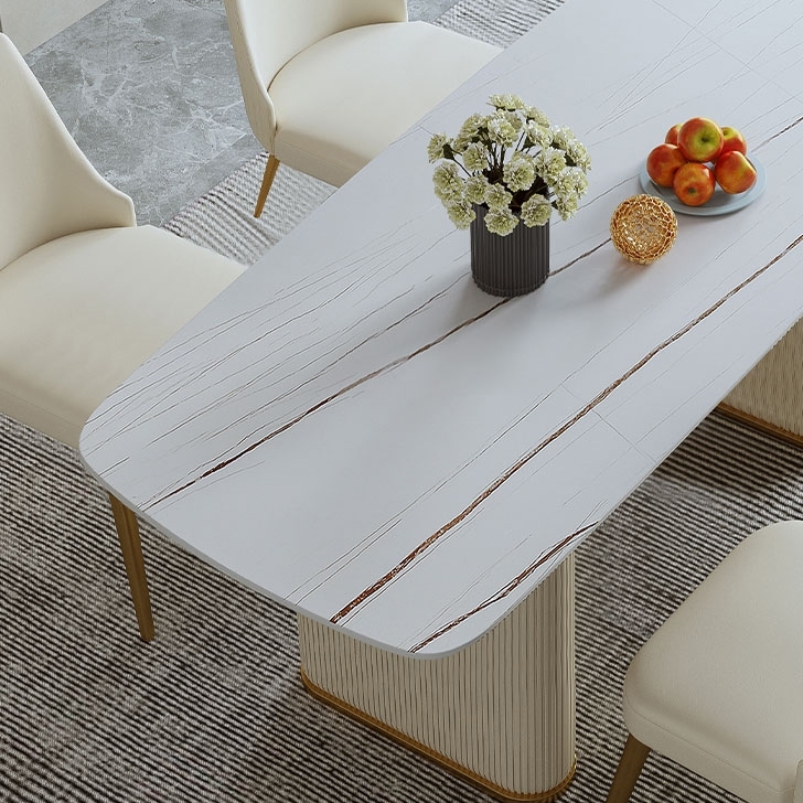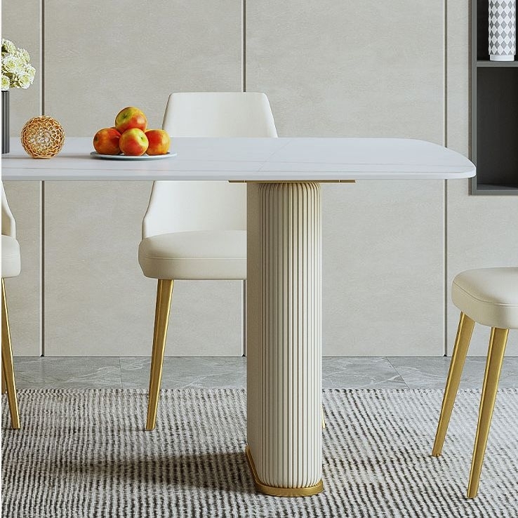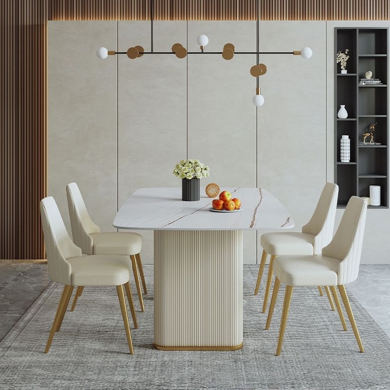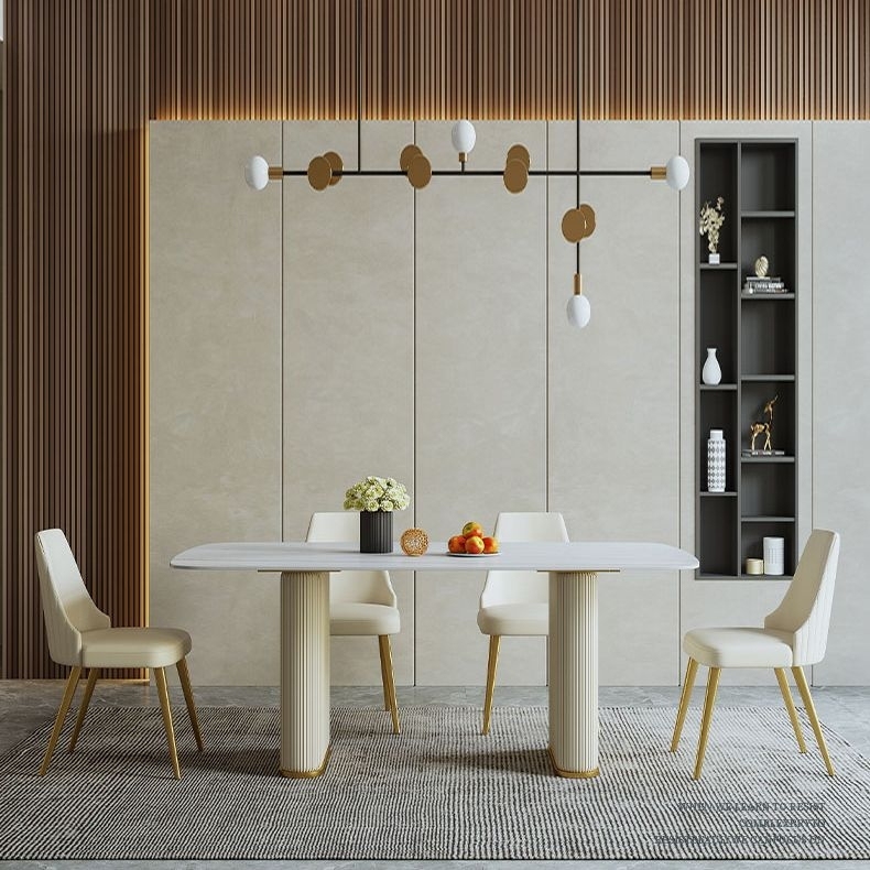 轻奢哑光岩板餐桌 大小户型长方形餐桌家用家具(劳伦白金)