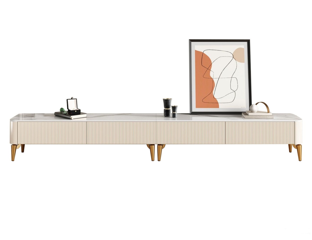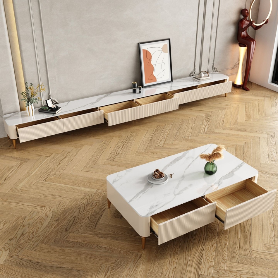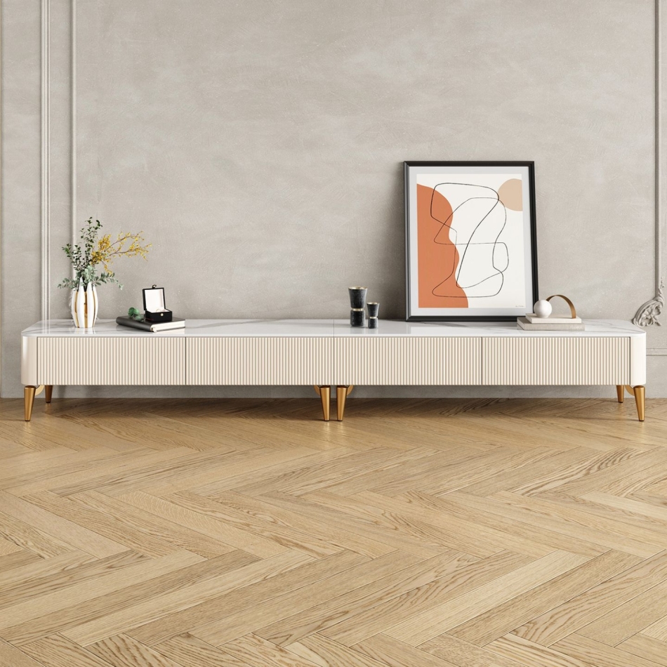 产品材质:框架:密度板钢琴烤漆+不锈钢镀金+6mm亮光鱼肚白岩板台面
