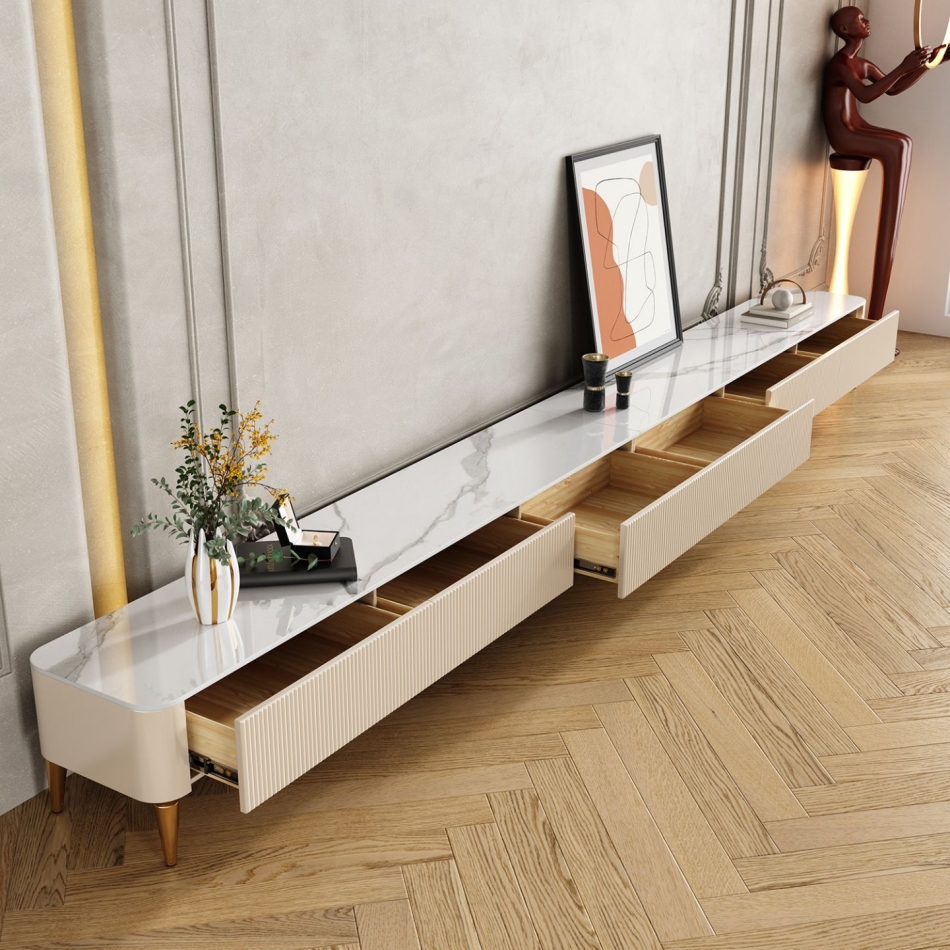 轻奢大小户型地柜亮光岩板长方形简约电视柜