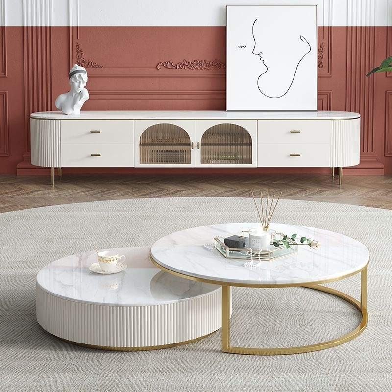 轻奢家用2米电视柜 客厅亮光雪山白岩板台面储物地柜