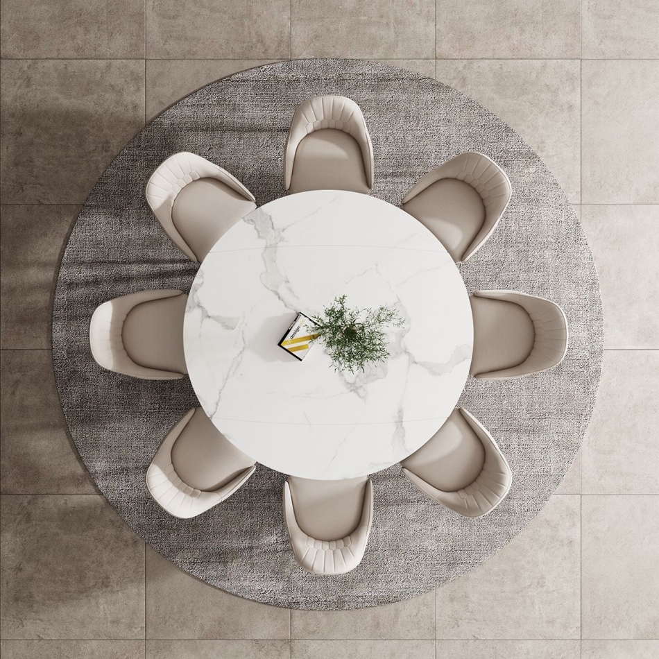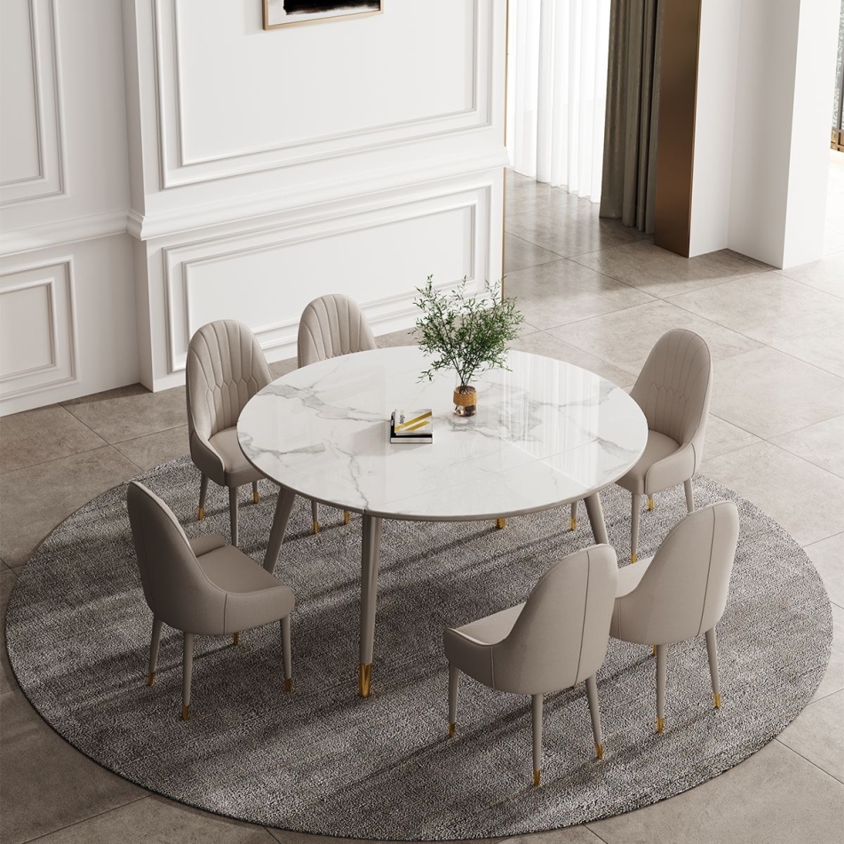 轻奢系列 雪山白亮光岩板意式伸缩餐桌