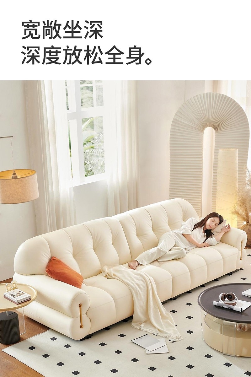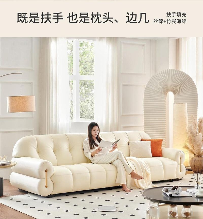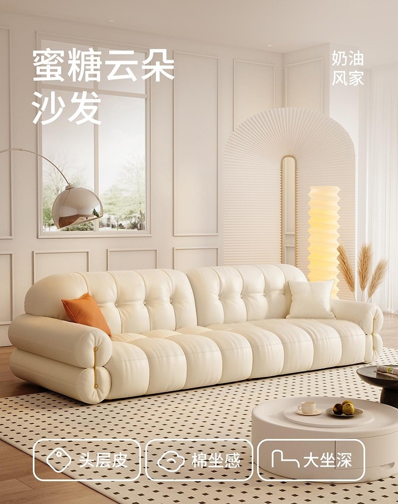 轻奢风软包沙发 简约客厅公寓头层牛皮荔枝纹沙发