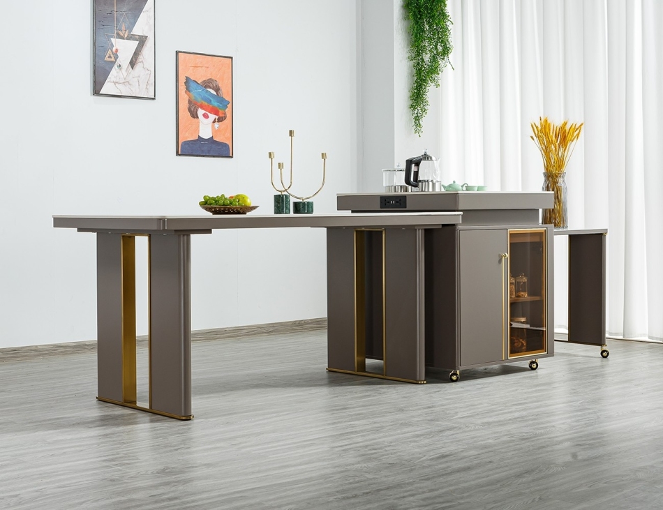 简约家用餐厅可伸缩岛台极简风多功能带茶盘隐藏电磁炉一体岛台