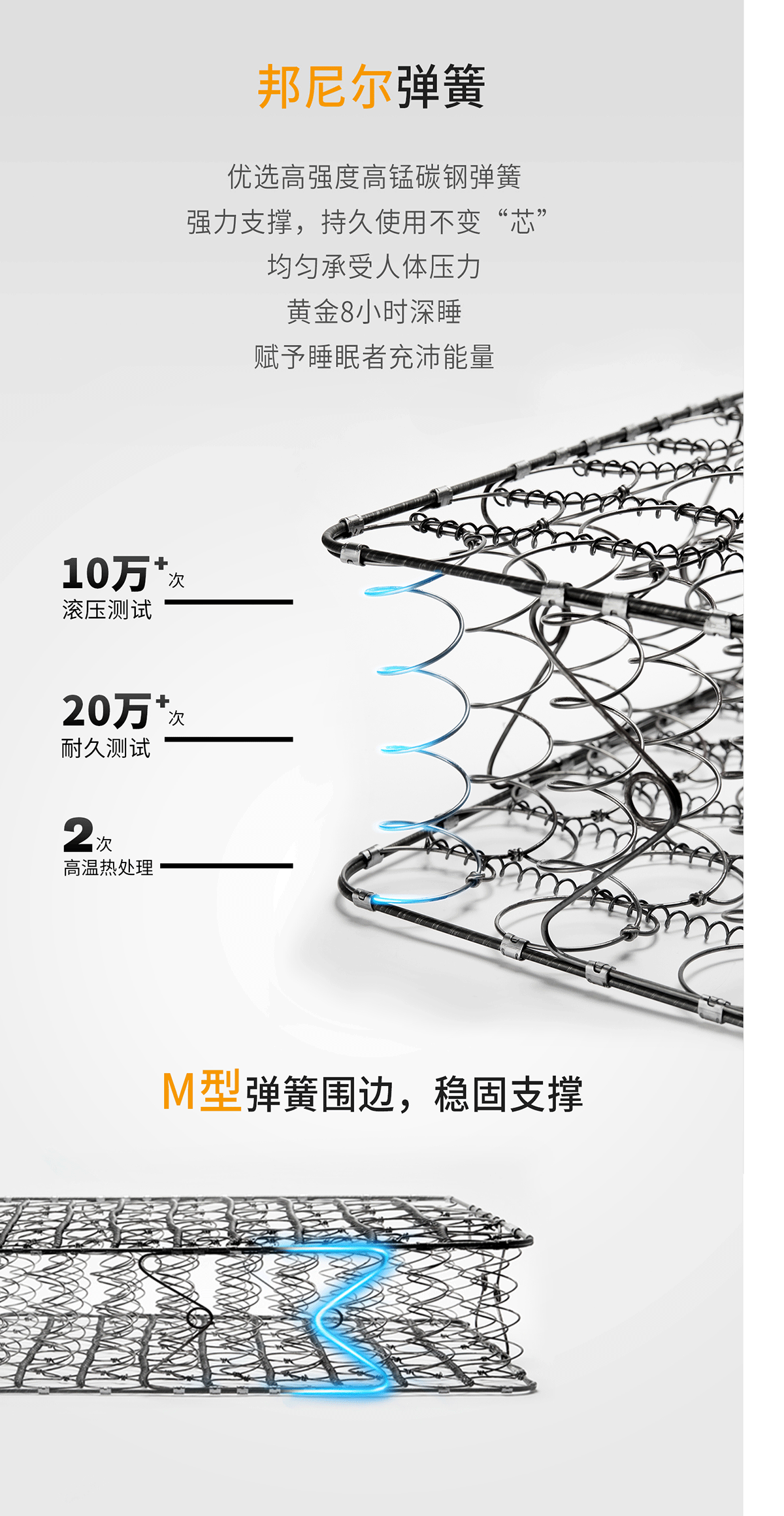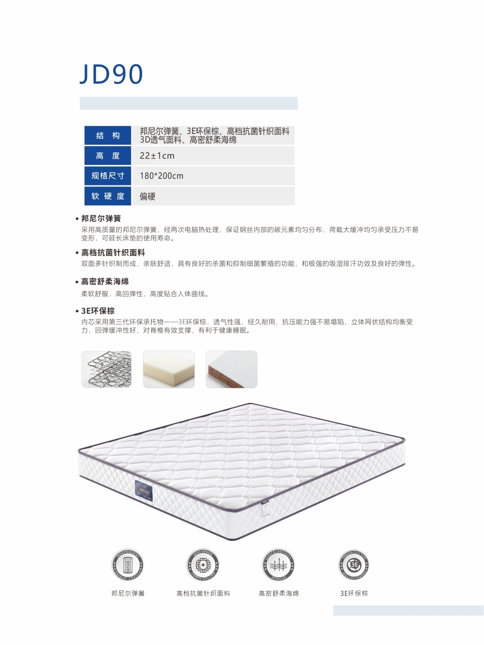 邦尼尔弹簧 3E环保棕 高档抗菌针织面料 高密舒柔海绵 22CM床垫(不包邮)