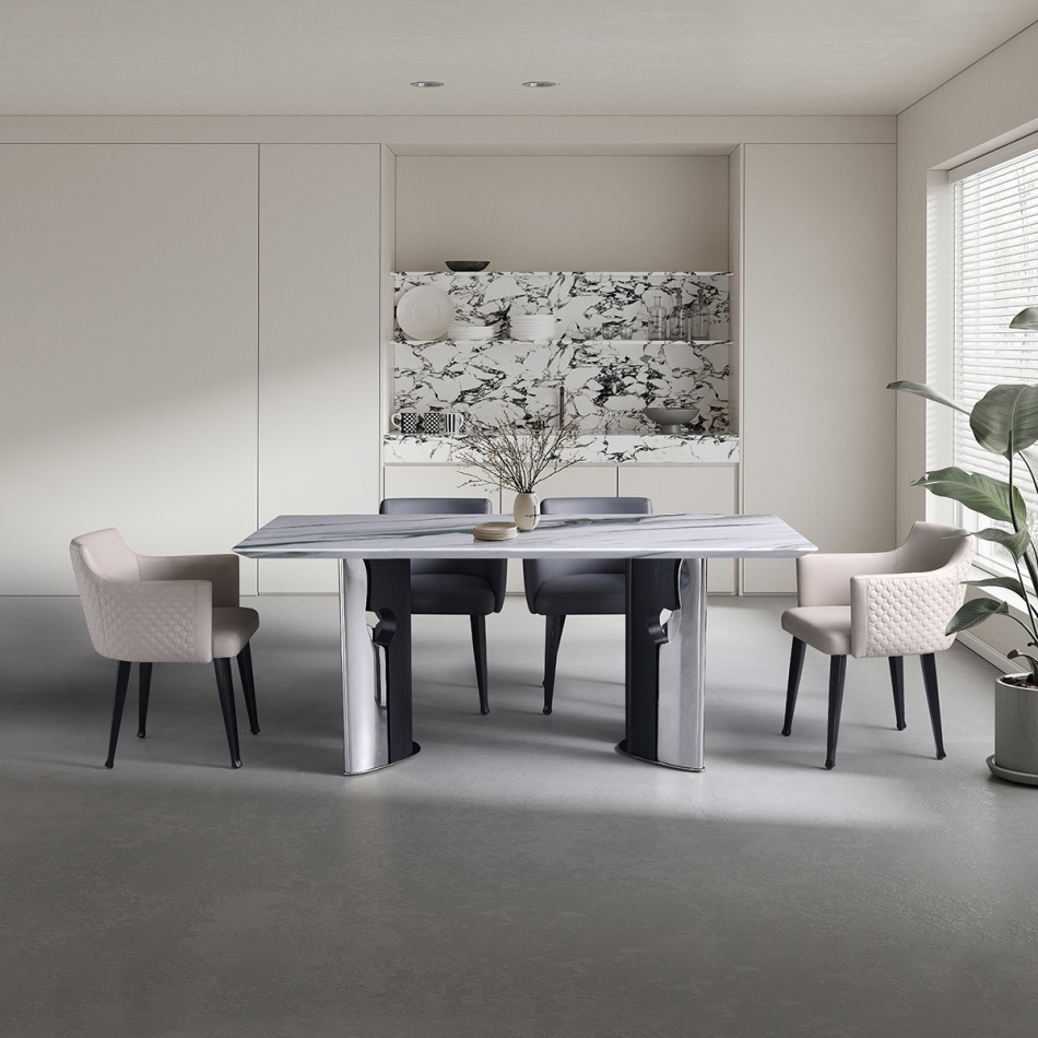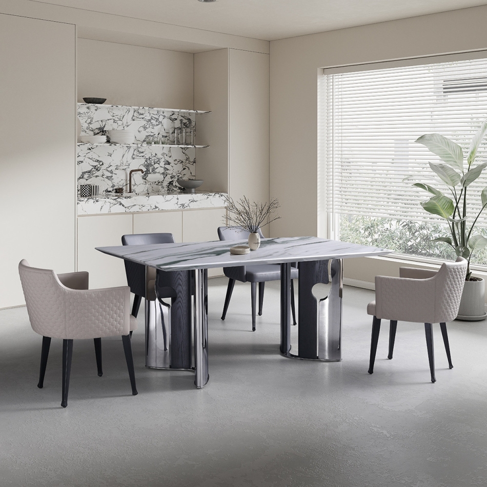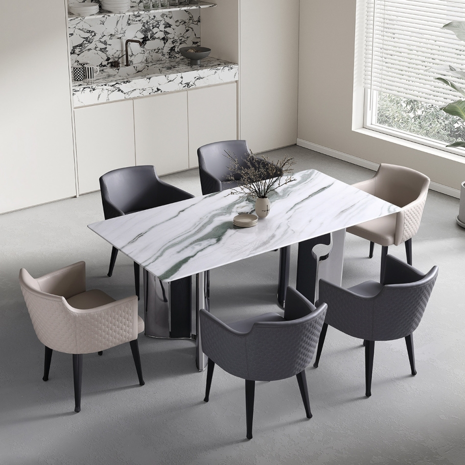 餐厅家用烟影流香人造大理石全封实木底板长餐桌