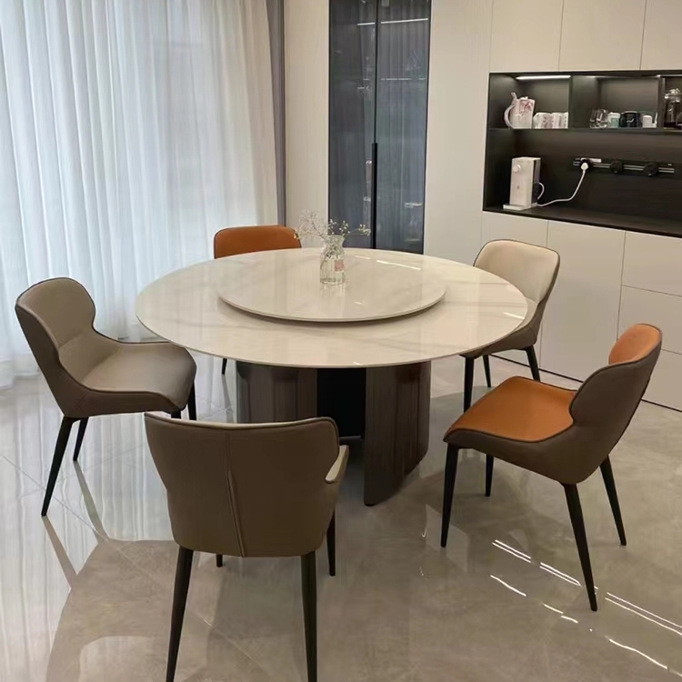 高档餐厅极简时尚圆桌家用亮光岩板转盘餐桌