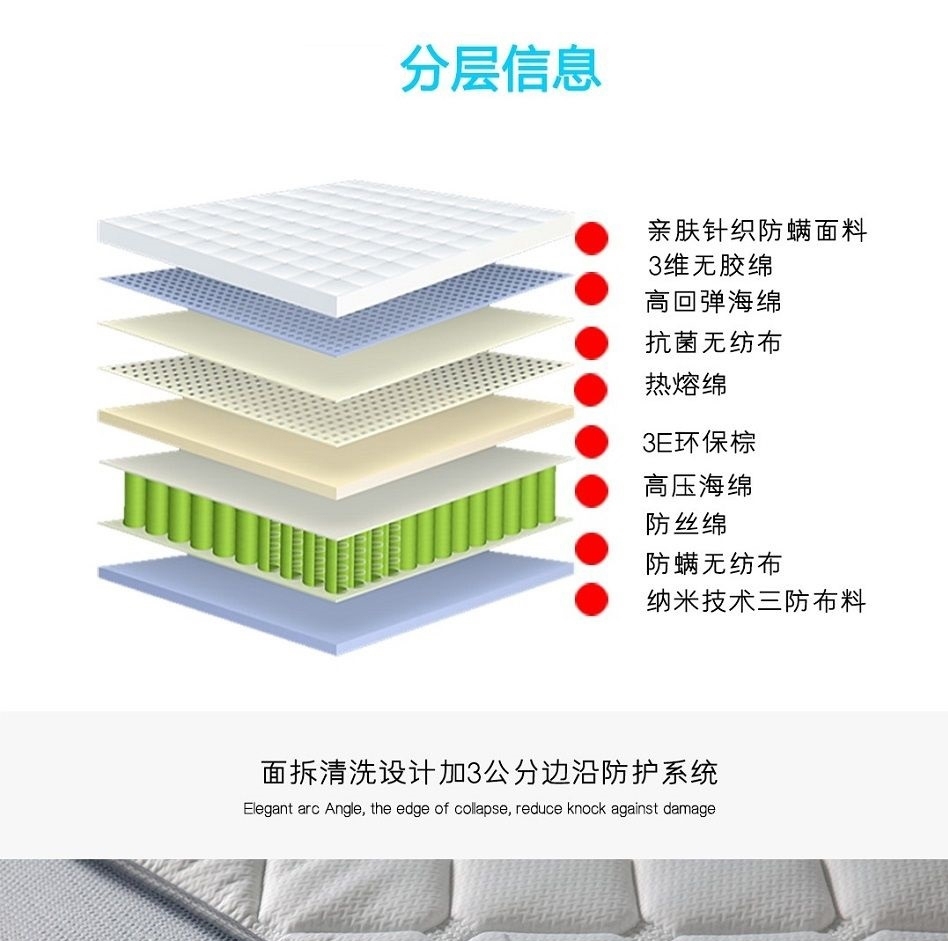 3D椰棕A款 乳胶B款 邦尼尔弹簧 亲肤防螨针织面料 22CM床垫