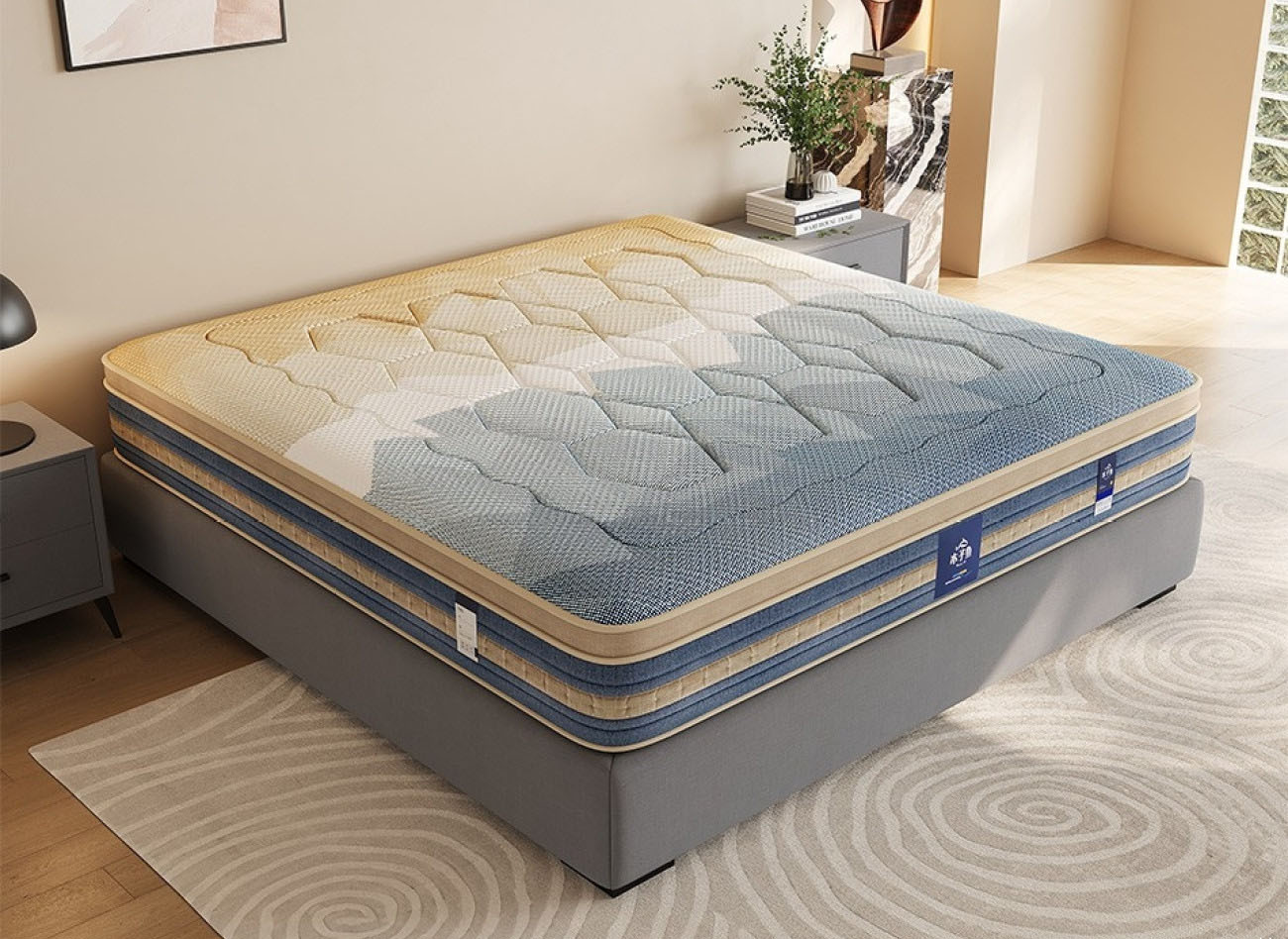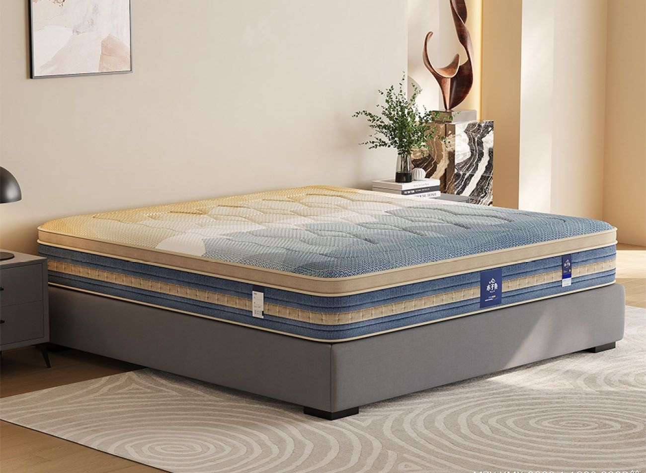 C020忆秋 高档提花针织纯绵面料 透气4D底面 2分高密度海绵 2分天然乳胶 邦尼尔弹簧 23CM床垫