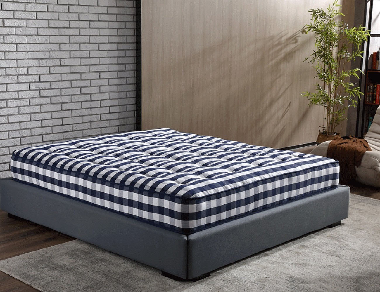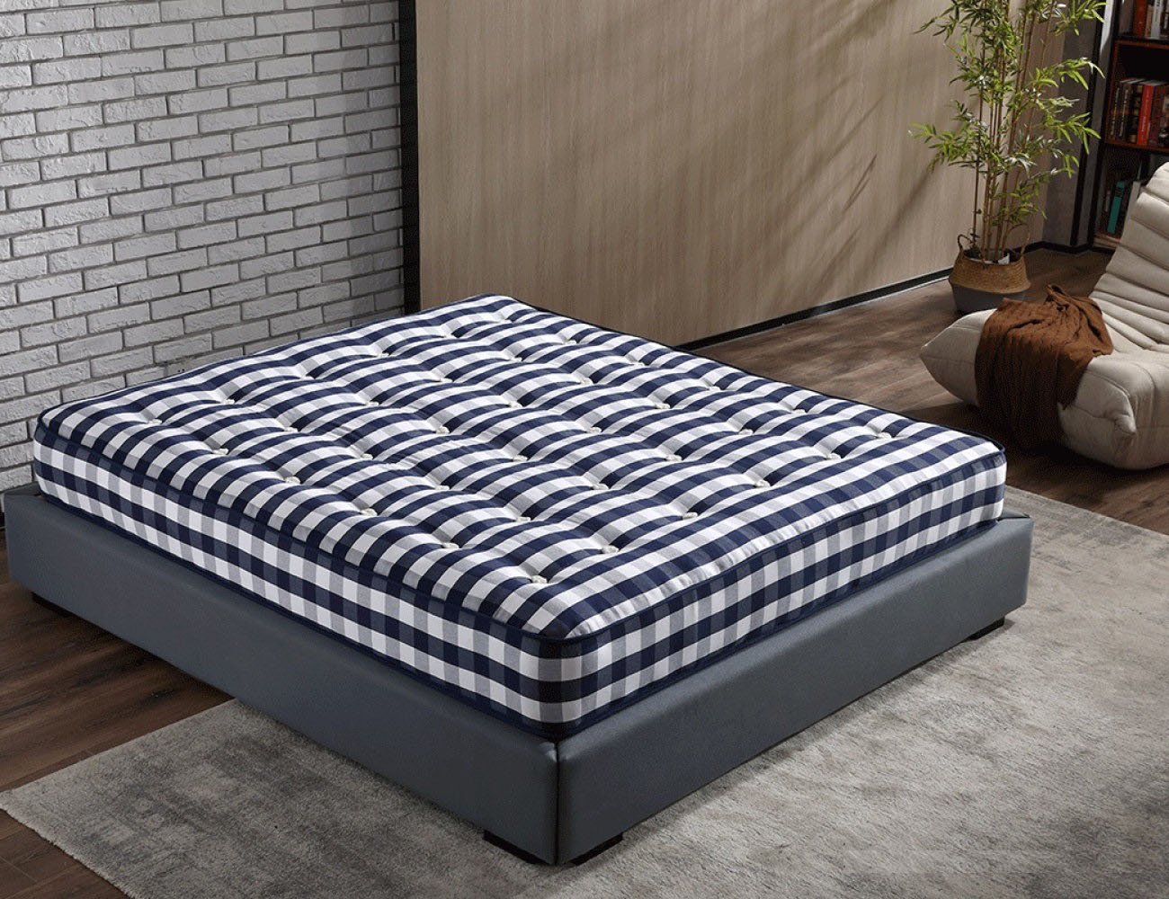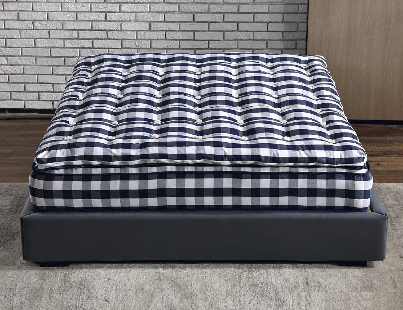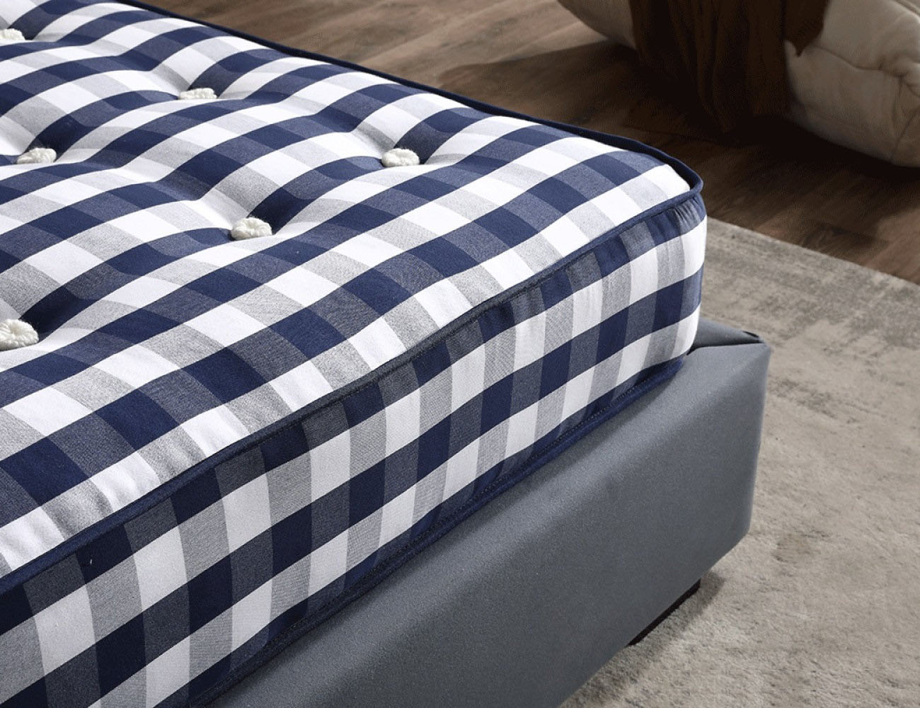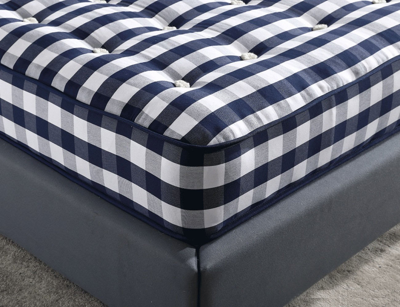 G881大S马尾毛纯手工床垫 进口长绒绵梭织蓝白格 新西兰羊毛 面包弹簧 防滑3D底面 30CM床垫