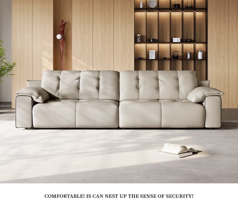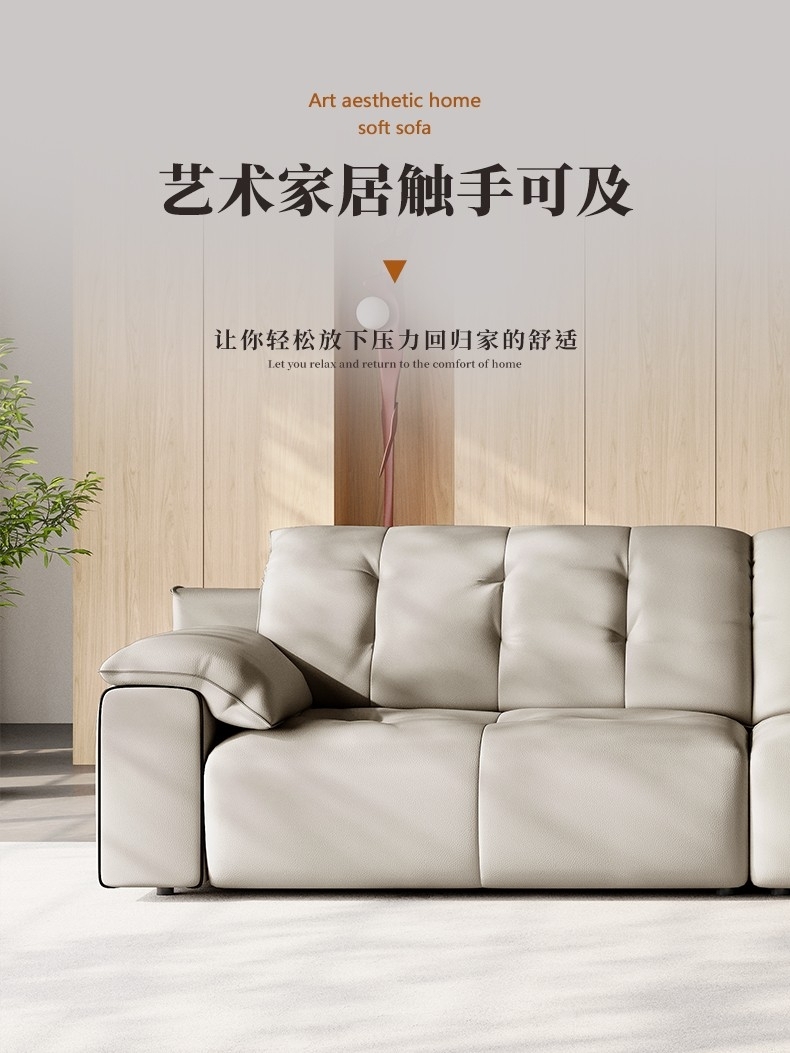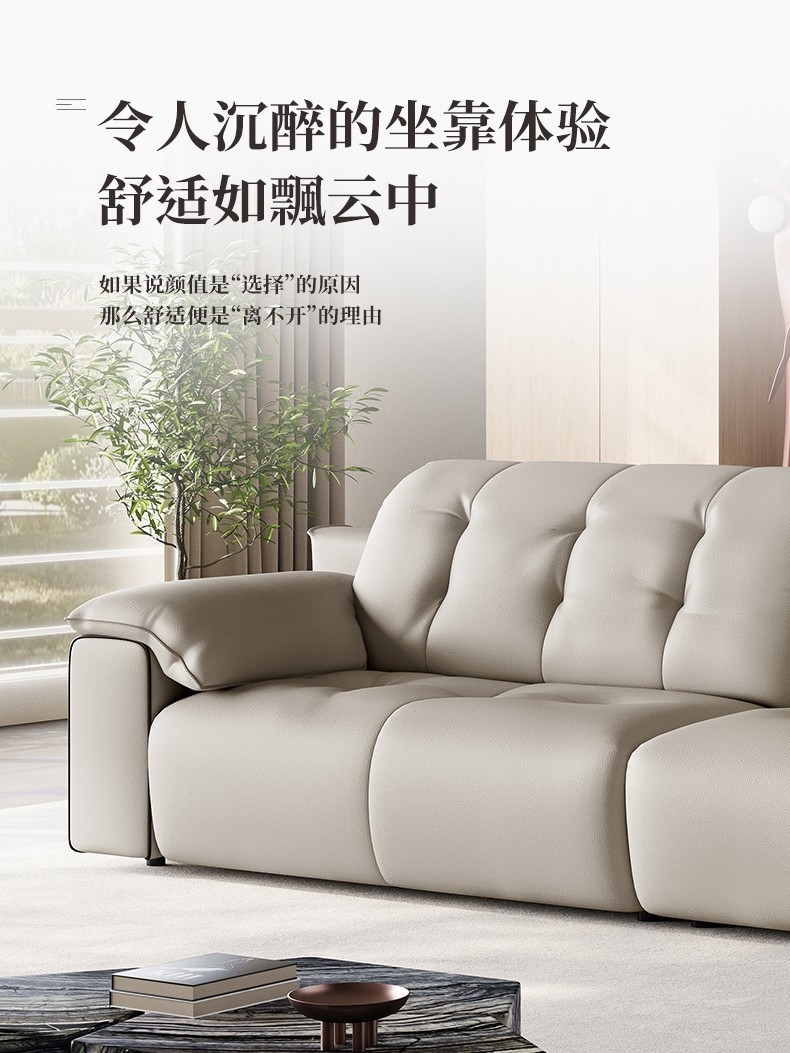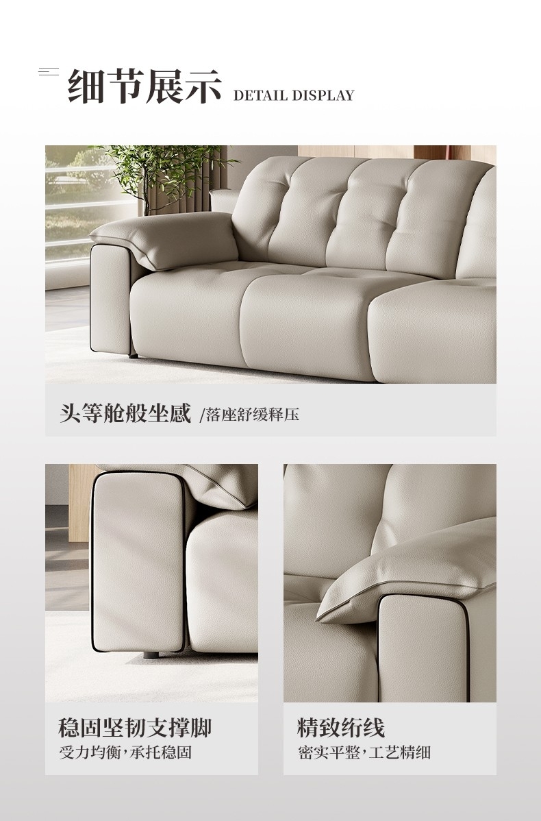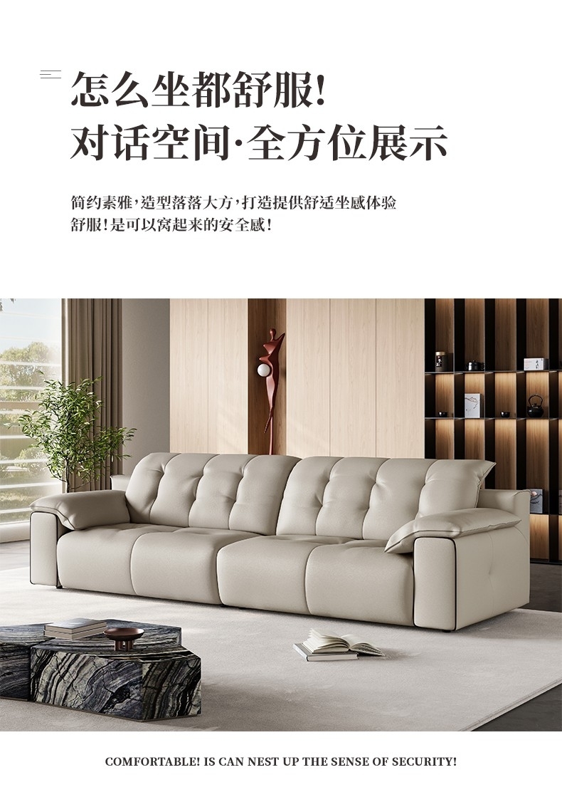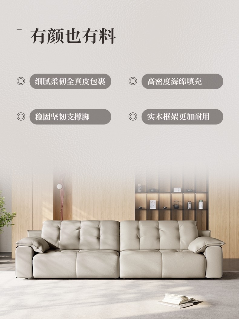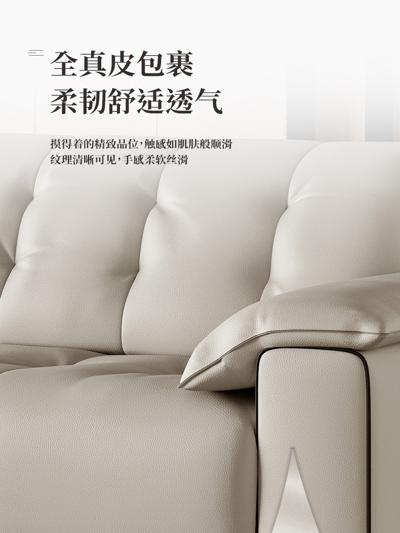 意式极简风荔枝纹沙发 简约1.4mm全头层黄牛皮软包直排沙发